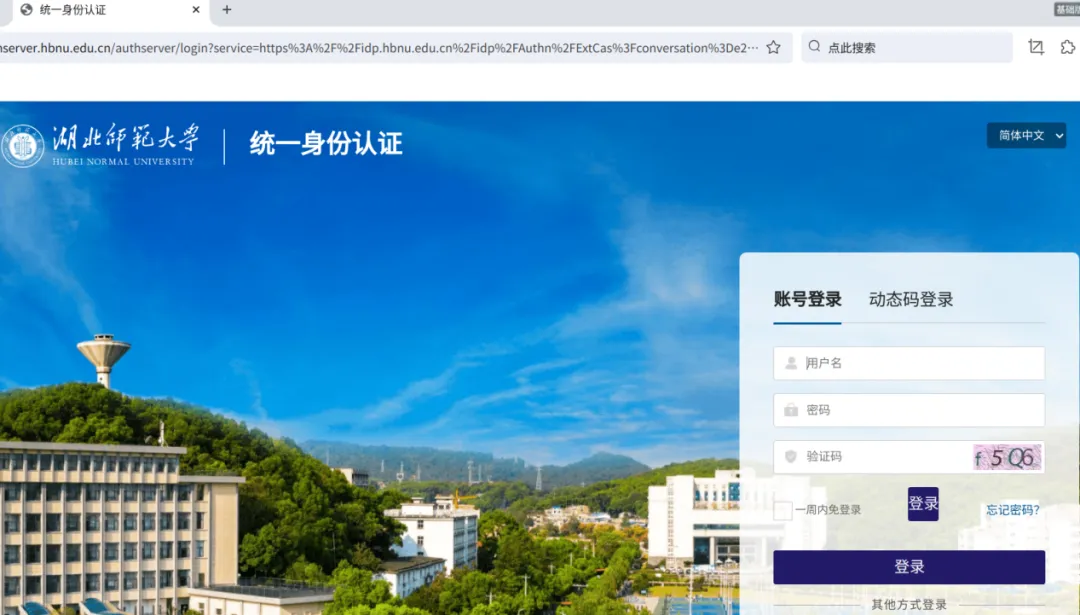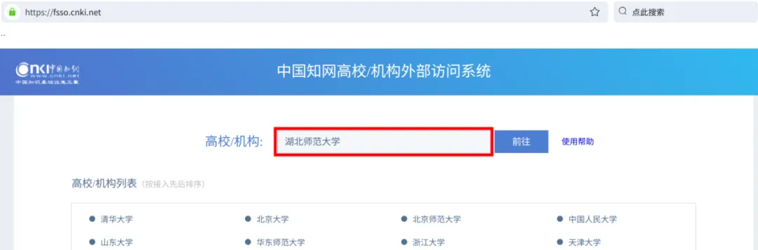 “高校/机构:”一栏选择或输入“湖北师范大学”前往登录认证页面