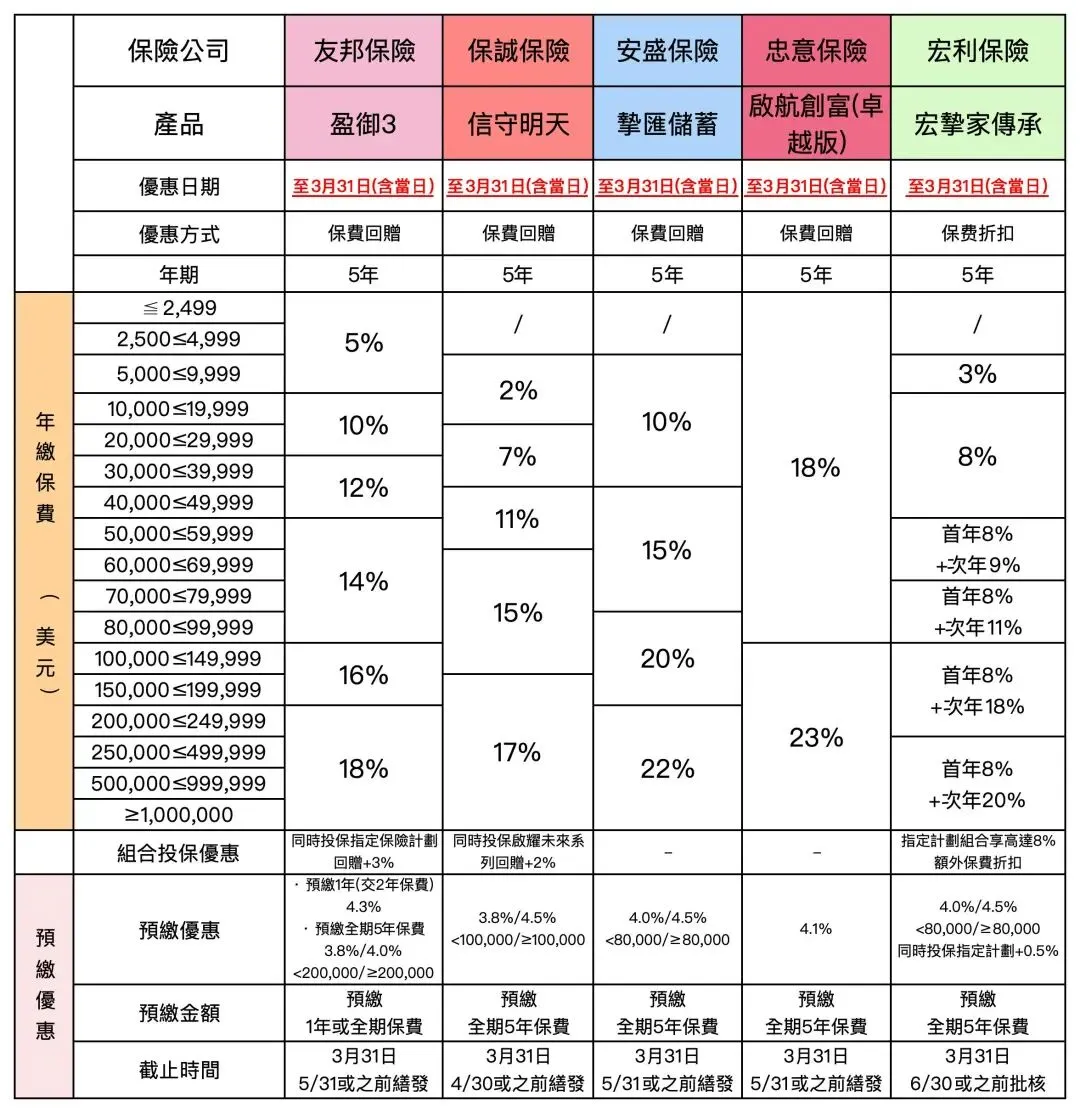 本文推廣優惠為各保司新增產品及變動情況!