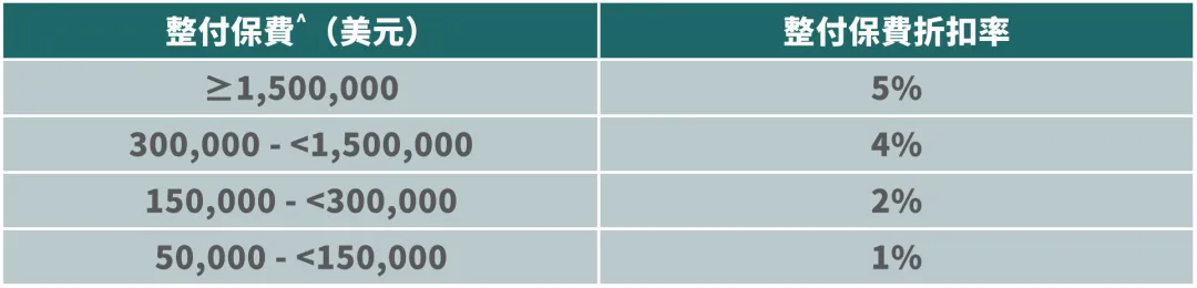 • 一筆過繳付保費,可獲高達5%整付保費折扣