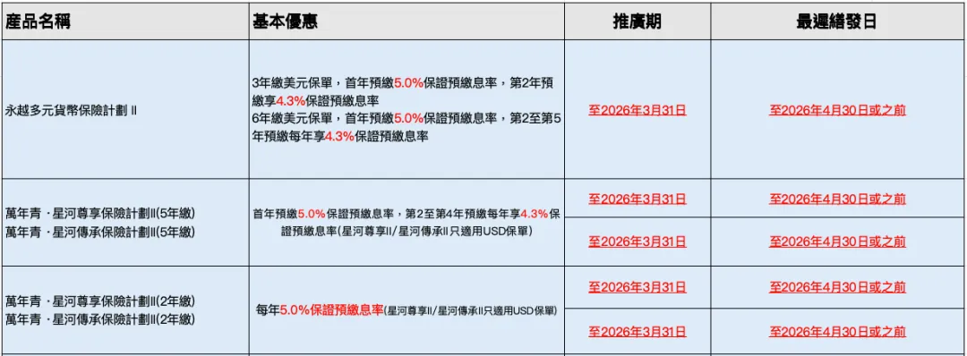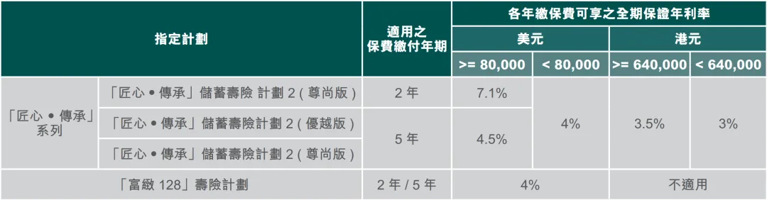• 下列產品之預繳保費可享保證每年高達7.1%年利率之利息
