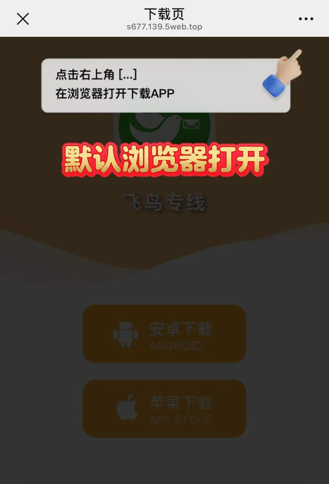 系统将自动在您的手机浏览器中,打开飞鸟专线的官方下载页面。