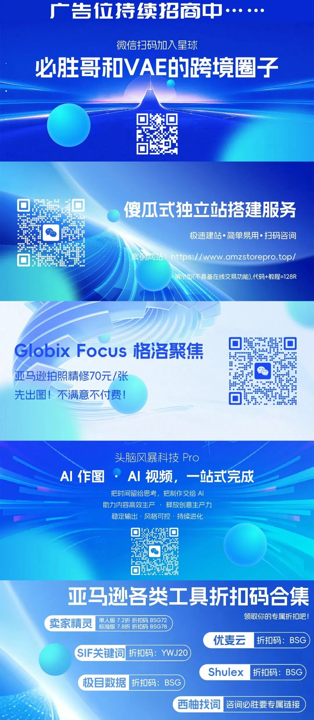 VAE创建了几个运营交流群,进群是完全免费的,群内自由交流(亚马逊相关的),服务商、货代、培训机构勿扰。在群里VAE会不定期分享亚马逊各种运营资料包,最新时事政策的分析,其它群日报总结,各种资源对接等等,感兴趣的朋友可以可以添加V:shuangV2026,备注VAE免费群。