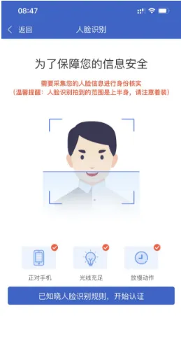 3、进入人脸识别页面,请您保持面部在框中,根据系统提示做出指定动作,直至验证成功;