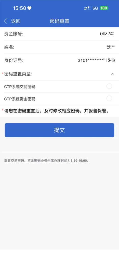 1、身份验证无误后,进入表单页面,选择您需要重置的密码类型;