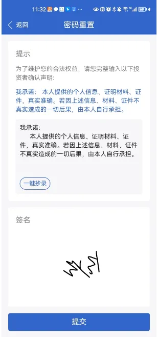 3.点击“一键抄录”完成承诺书抄录,进行电子签名后提交申请。