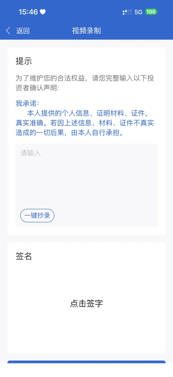 2.点击“一键抄录”完成承诺书抄录,进行电子签名后提交申请。