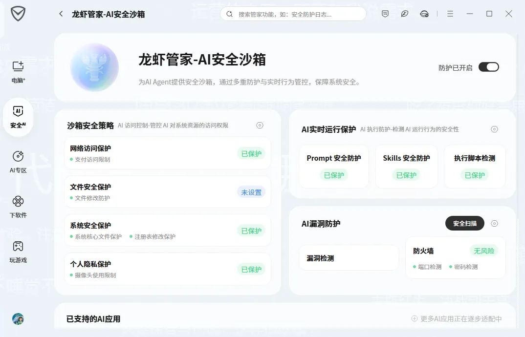 等QClaw界面显示“微信已连接”,绑定还不算完!必须在客服号发任意一句话激活会话,不然建不起长连接,发啥指令都没用,这步是隐藏小细节,别忘啦!装完之后大概率会收到更新提示,更完之后会新增「龙虾管家安全沙箱」功能,直接跳腾讯电脑管家做权限管控,咱的电脑隐私和安全直接拉满~