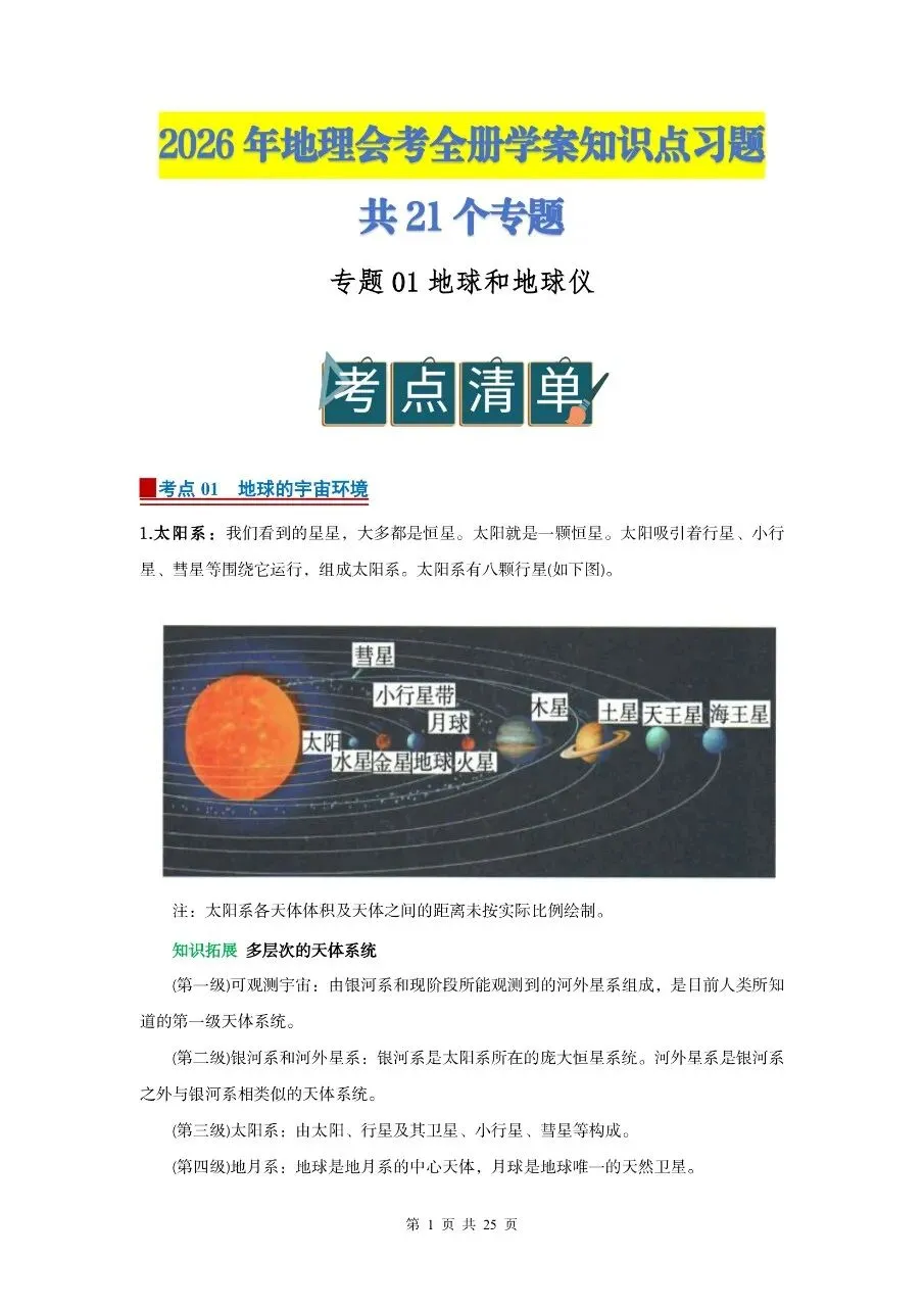 2026年最新版地理会考全册知识学案习题汇总(含答案解析) 有完整电子版可打印,学霸学习好帮手,建议家长打印,学霸人手一份!
