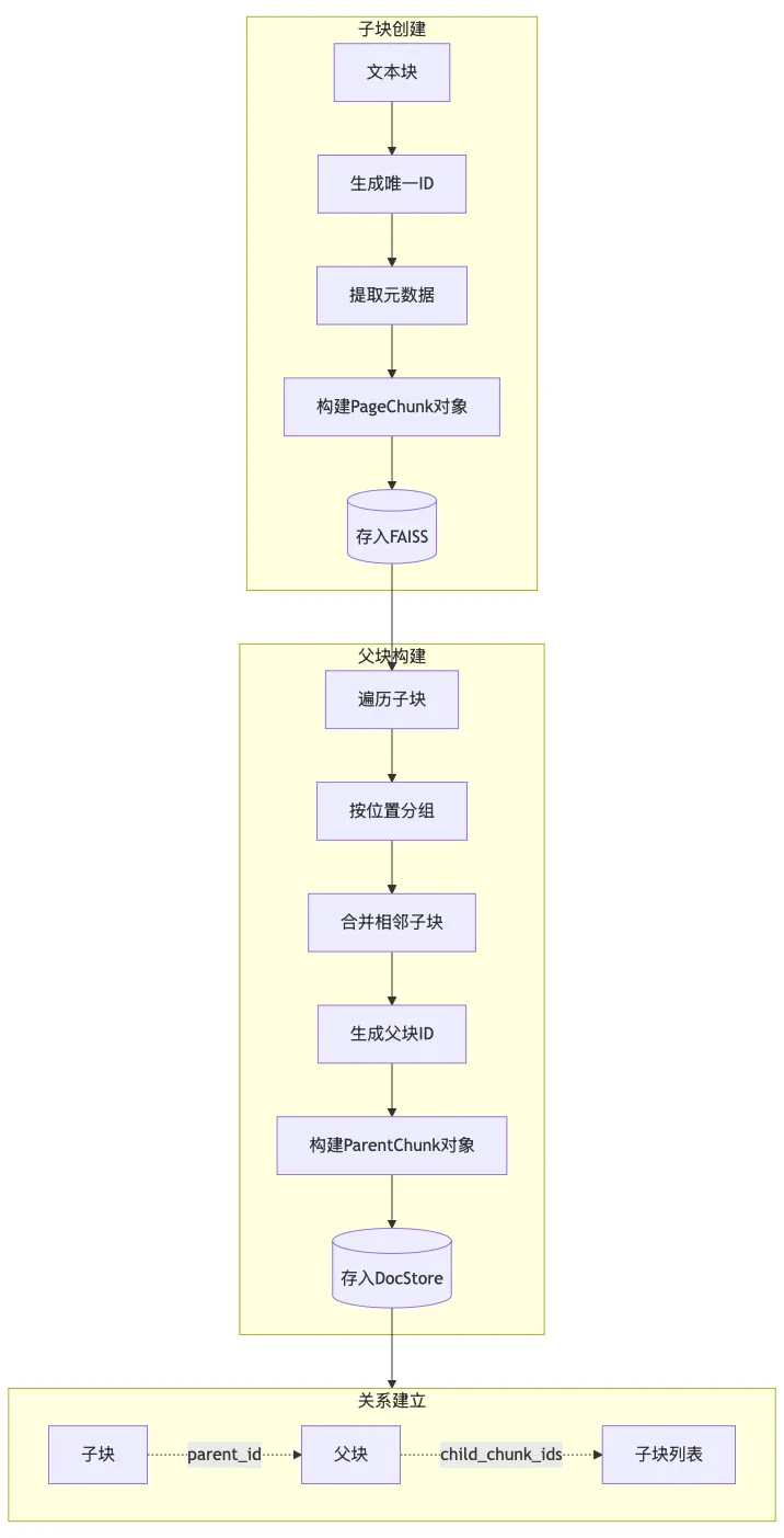 这是本系统的技术核心。父子块结构的设计理念源于对RAG检索和LLM生成两个阶段的深度理解: