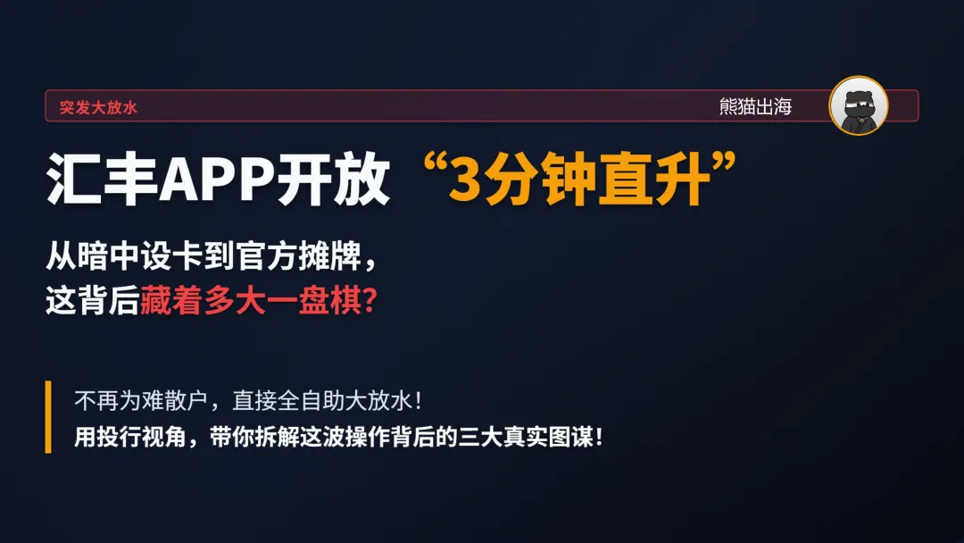 那为什么今天,汇丰突然把门窗全部拆掉,直接搞起了“全自助大放水”? 熊猫用投行的视角,给你拆解汇丰这波操作背后的三大真实图谋: