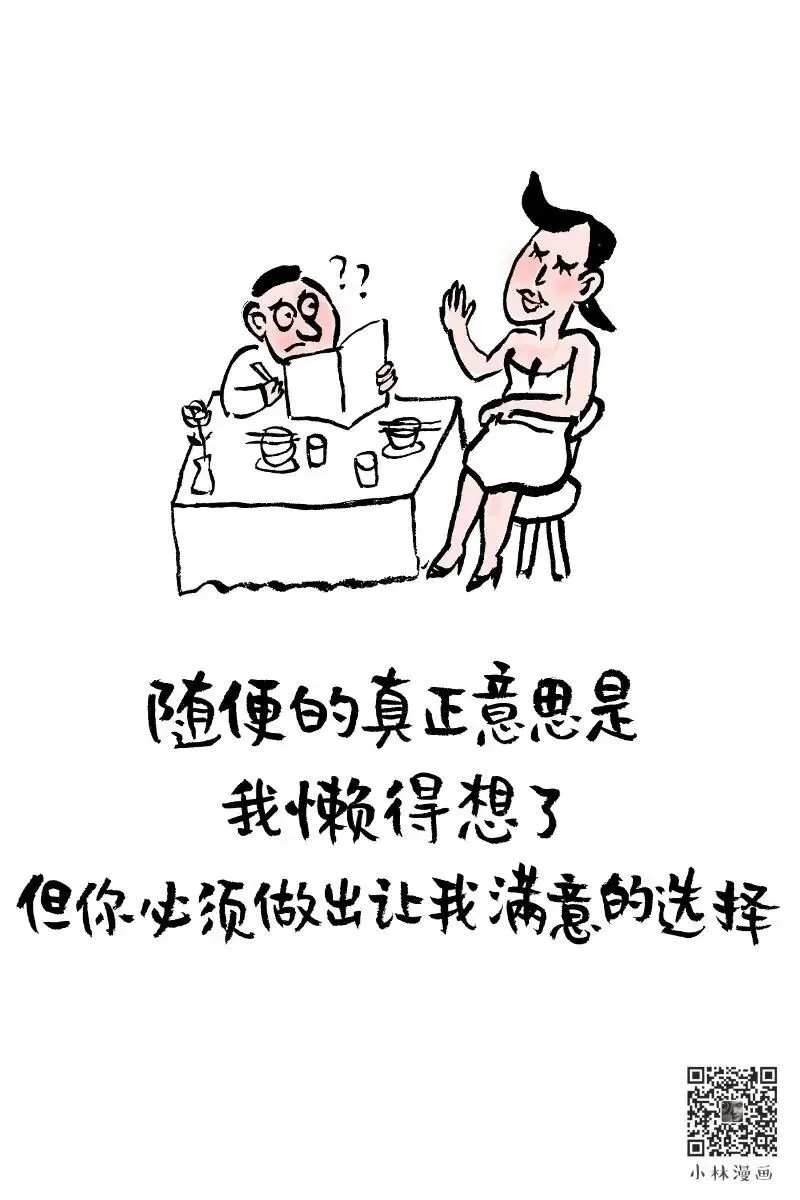 随便的真正意思是,我懒得想了,但你必须做出让我满意的选择。