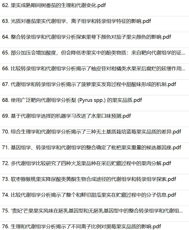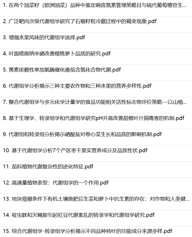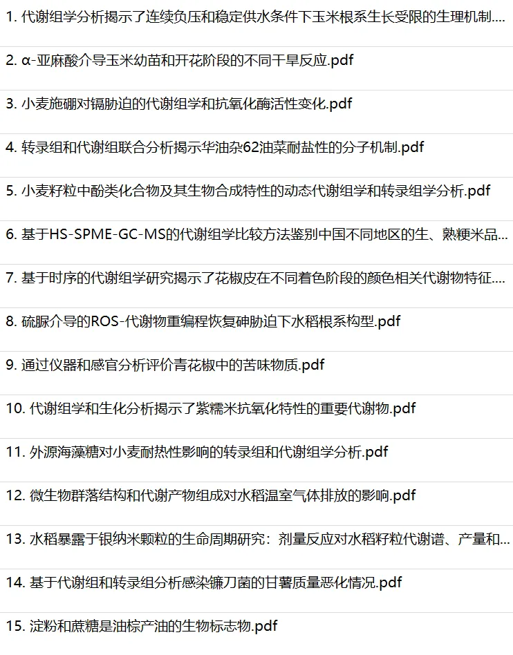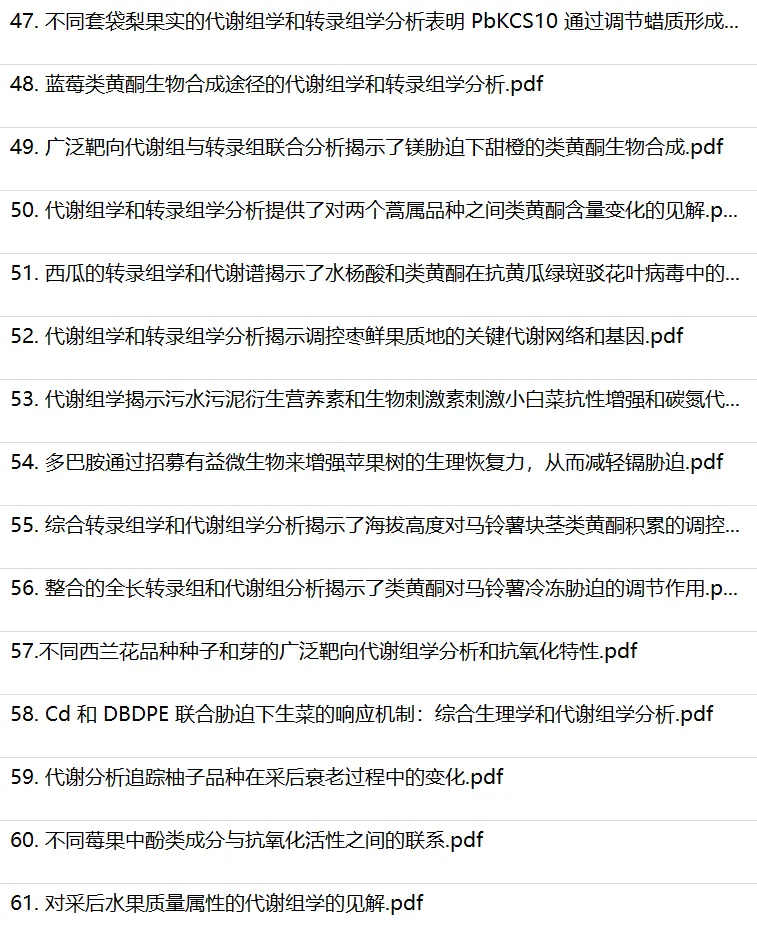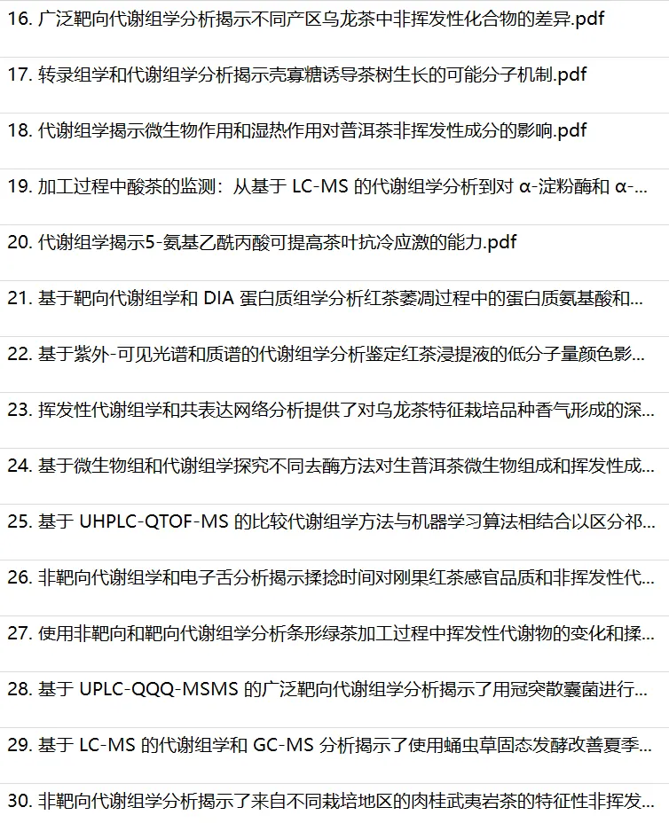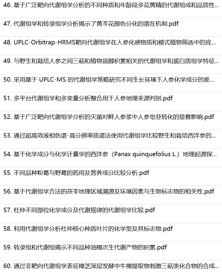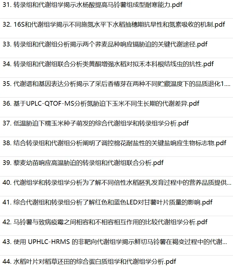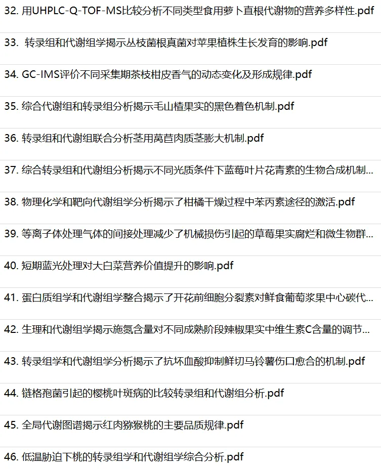 260篇精选植物代谢组文献合集,包括果蔬、作物、茶叶、药用植物等