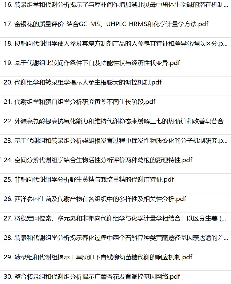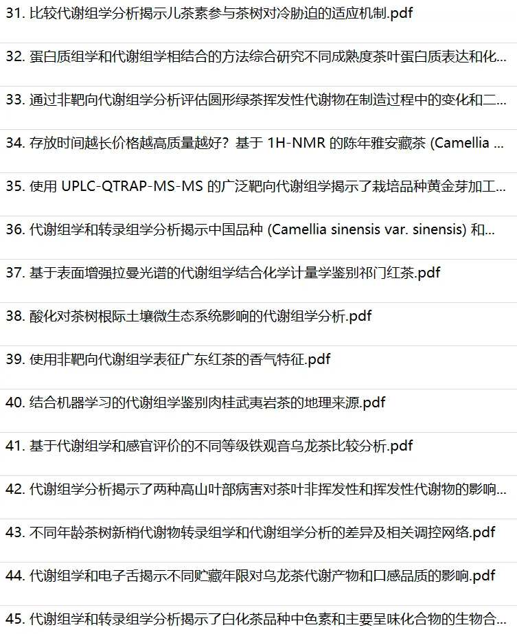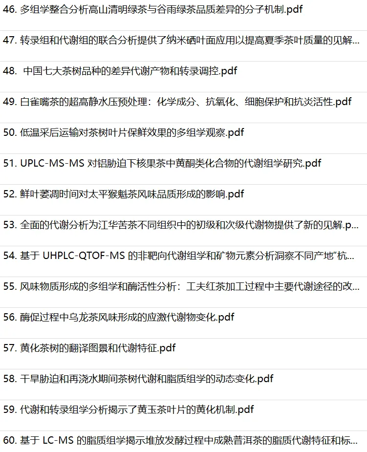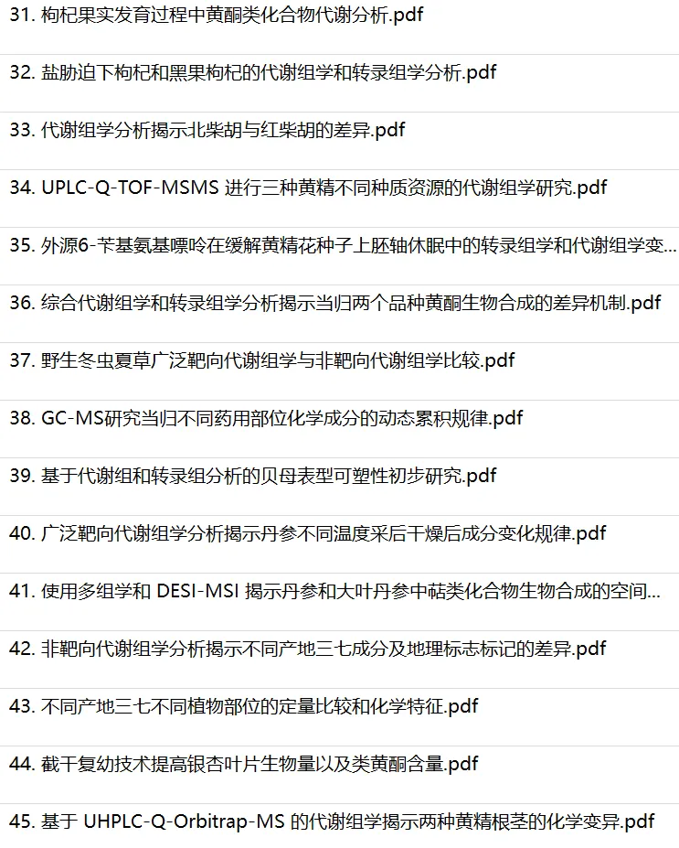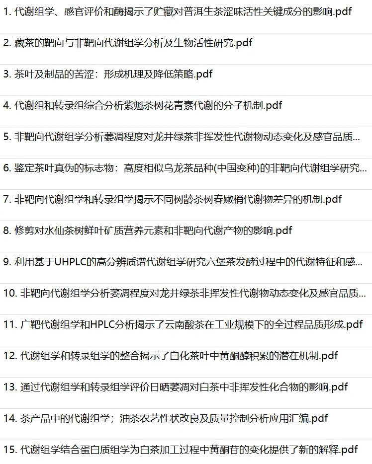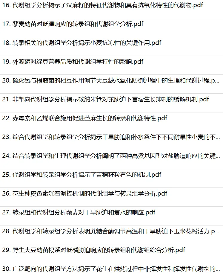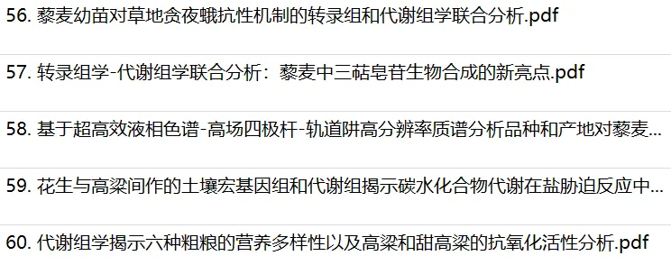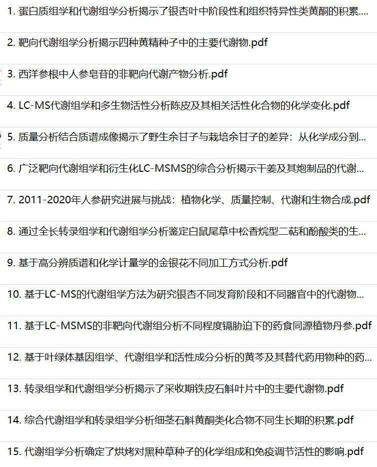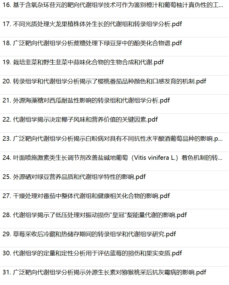 260篇精选植物代谢组文献合集,包括果蔬、作物、茶叶、药用植物等