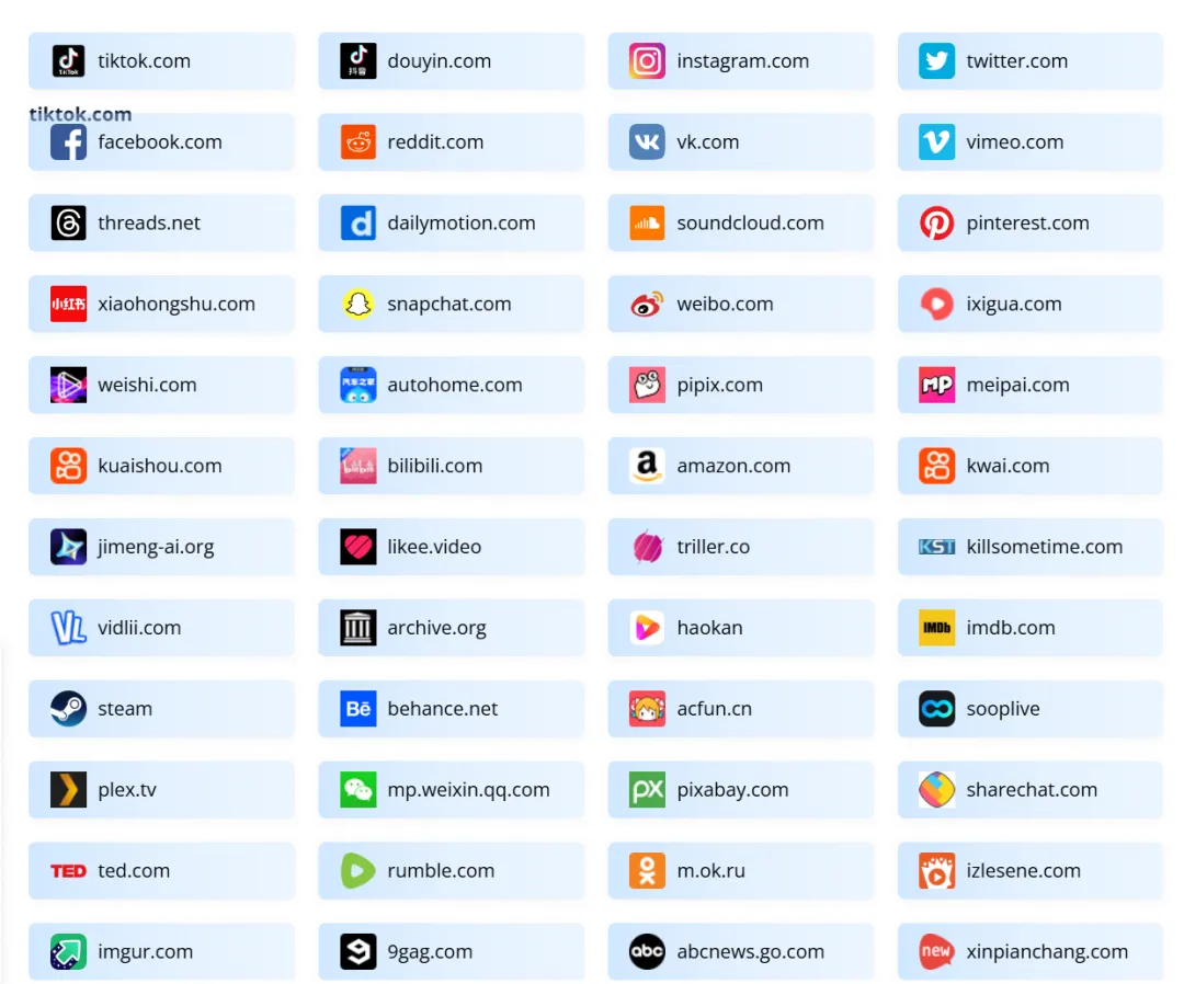 多平台全覆盖,主流视频通吃支持微博、抖音、快手、B站、小红书、油管、tiktok等主流平台,复制视频链接粘贴进去,一键就能解析,不用再换多个工具来回折腾。