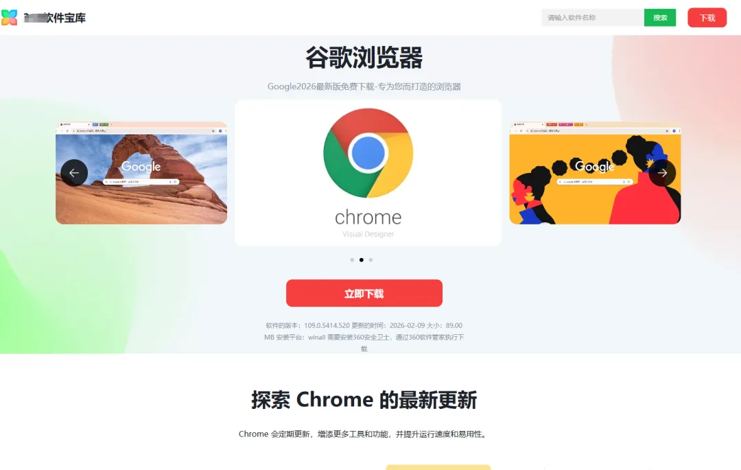 看起来很友好,直接点击了下载,那么我下载的实际是***软件宝库,而不是我想要的谷歌浏览器,