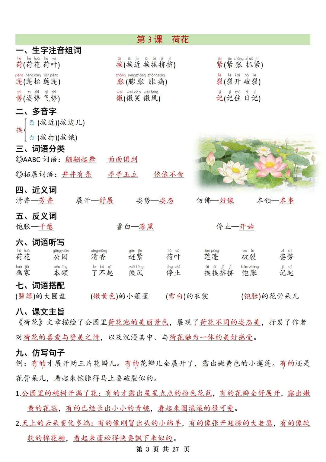 《三下语文全册知识点清单》