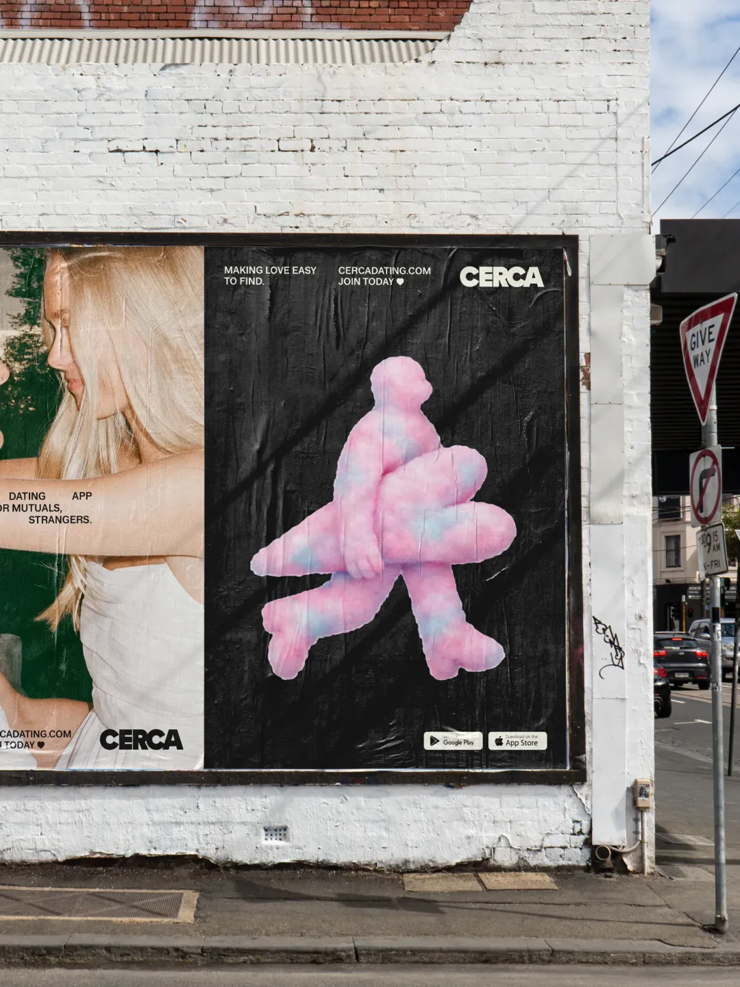 这个品牌系统需要 flex across 多种场景:数字界面、户外广告、现实社交体验。设计师的目标是让 Cerca 在任何媒介中都保持 coherence,同时让“连接”这件事显得 intentional and rooted in real life。