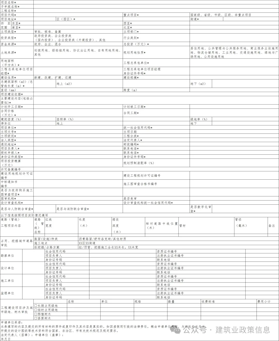 2.高效办成市政设施建设集成审批“一件事”申请表单