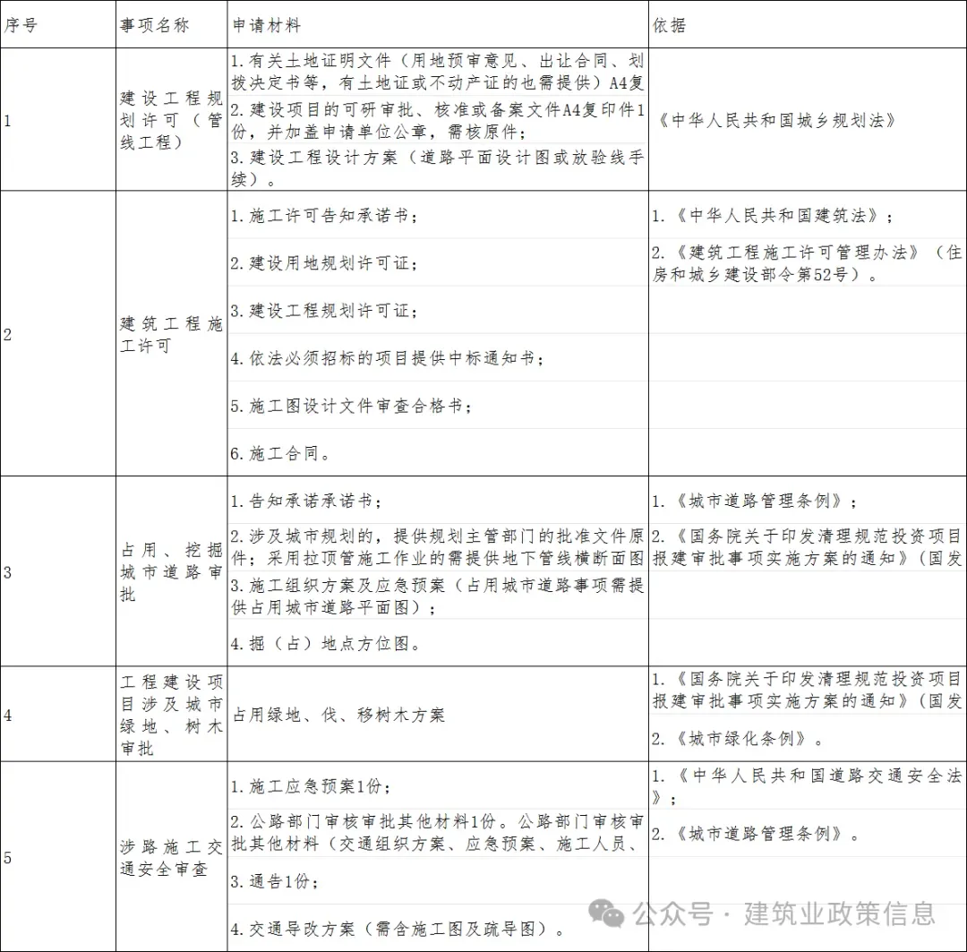 3.高效办成市政设施建设集成审批“一件事”材料清单