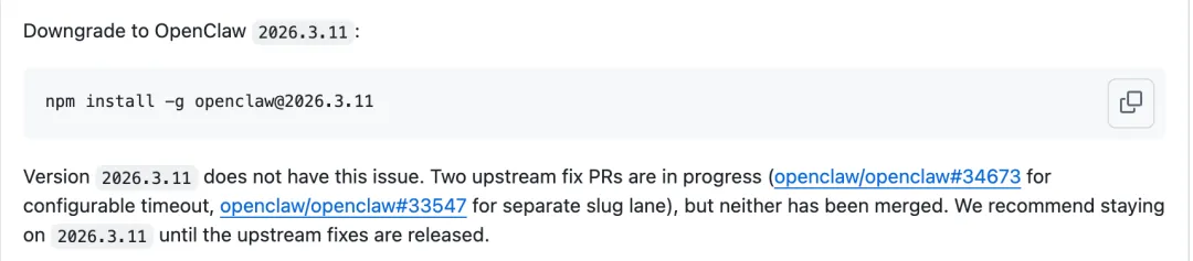 在安装MemOS插件前,原本计划是集成OpenViking,上个月在X上看到了一位技术博主,在官方插件出来前,就自己实现了一套,那时候自己也想按照帖子里的内容试一下,后来官方插件出来了1.0版本的slot模式,有着session启动会hang住的问题,issue#591。解决方式只能是降低版本…