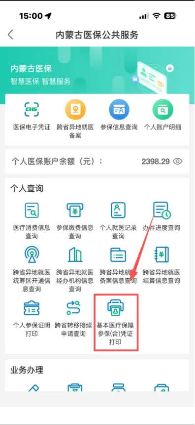 蒙速办APP操作指南丨基本医疗保障参保(合)凭证打印 一、打开“蒙速办”APP首页,点击“办事”“部门服务”“内蒙古医保服务”。 二、点击基本医疗保障参保(合)凭证打印。 三、点击预览即可显示基本医疗保障参保(合)凭证打印。 撰 稿:赵 冕 编 辑:姜 阳 审 核:徐淑霞 总 审:王 莹