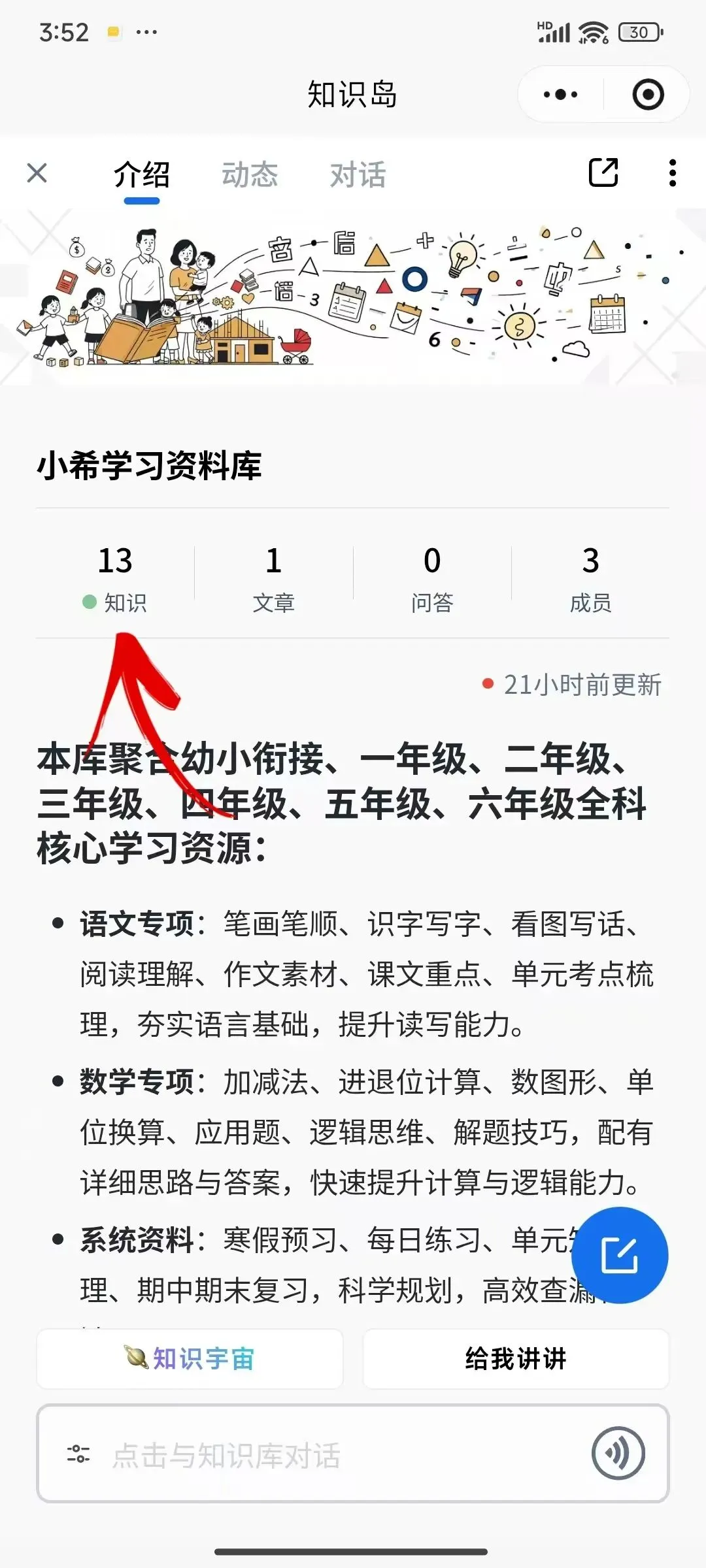 3、知识库订阅成功后,点击下方图片的 “知识” ,即可看到,小希所有分享的学习资料。