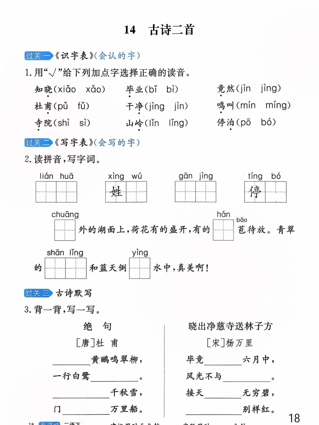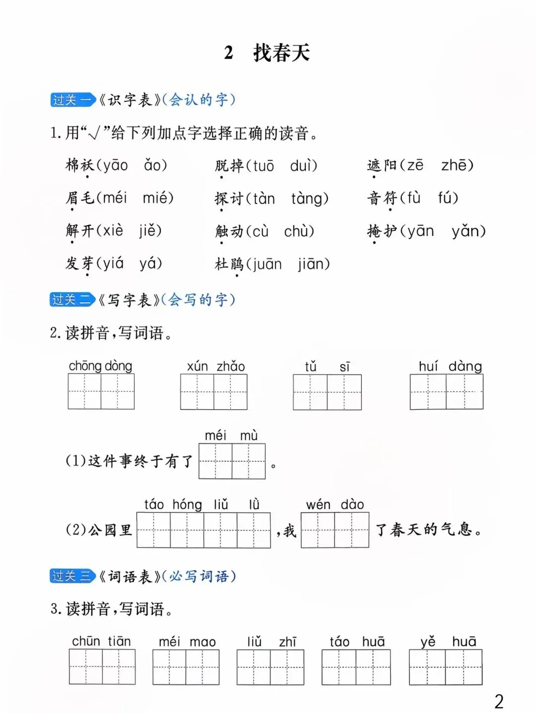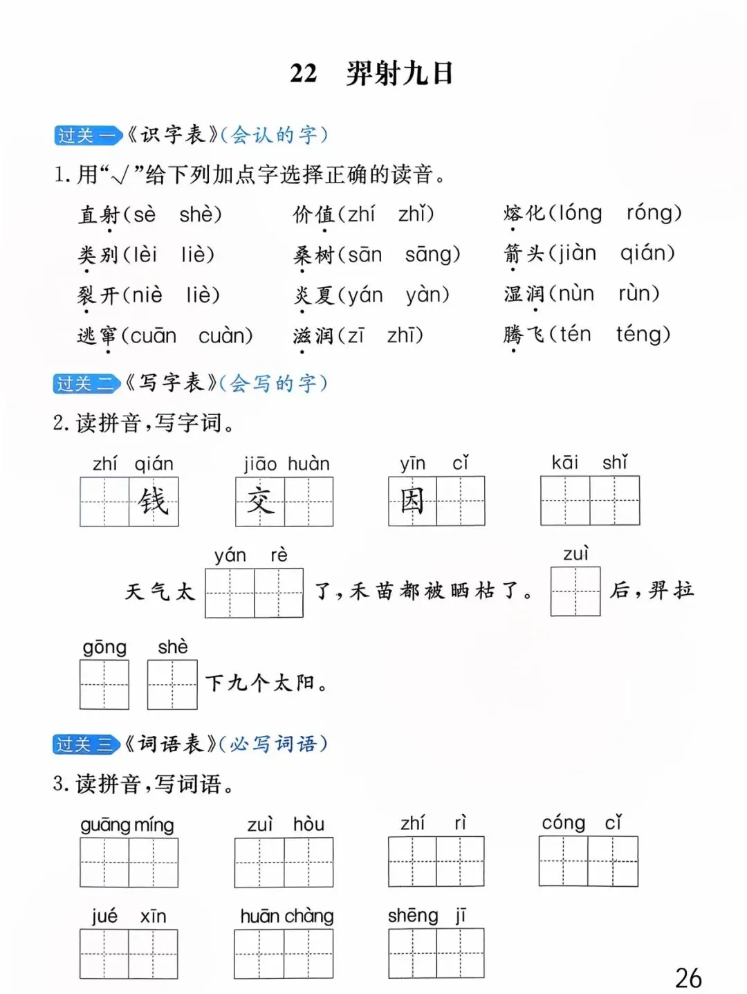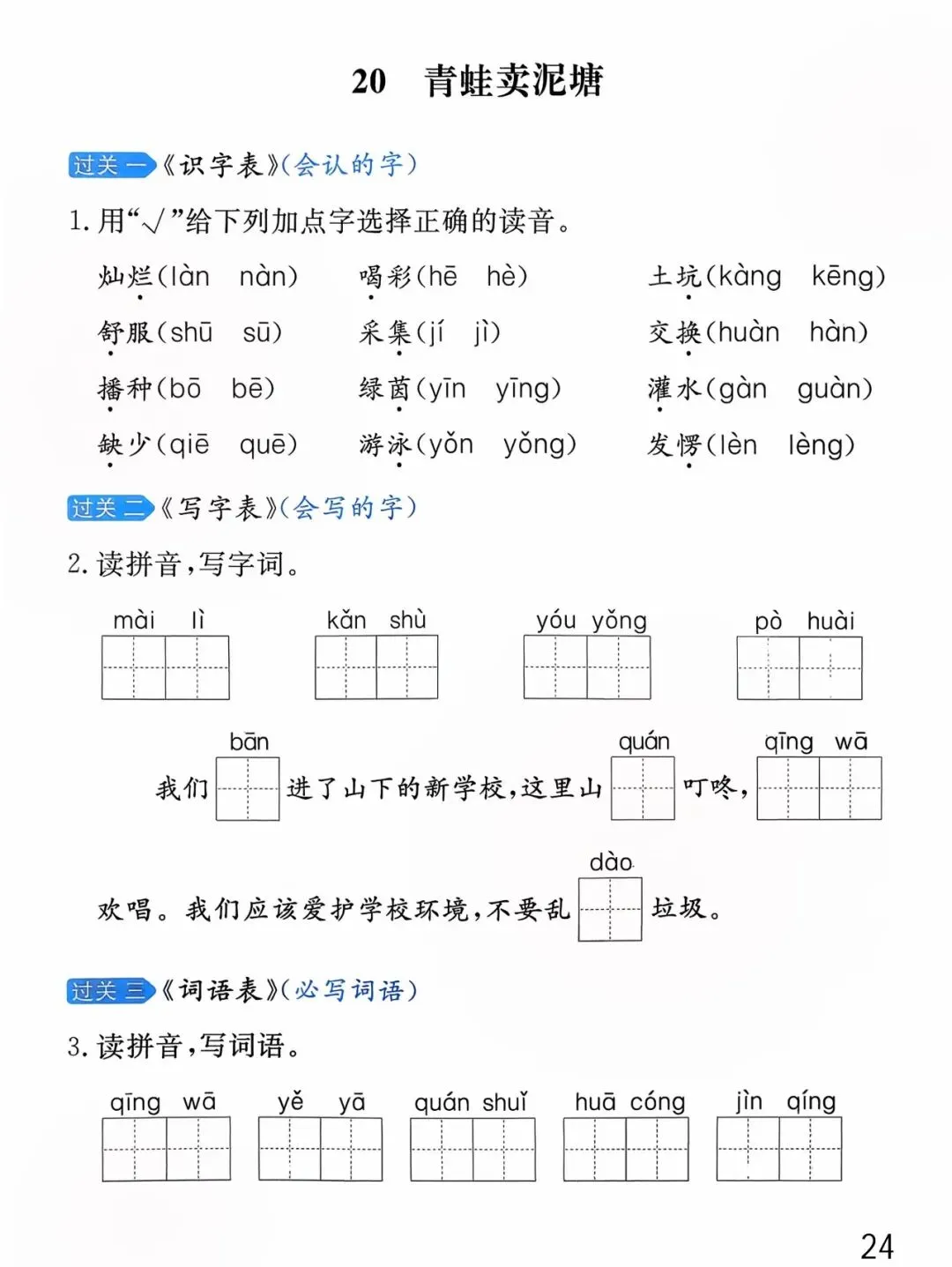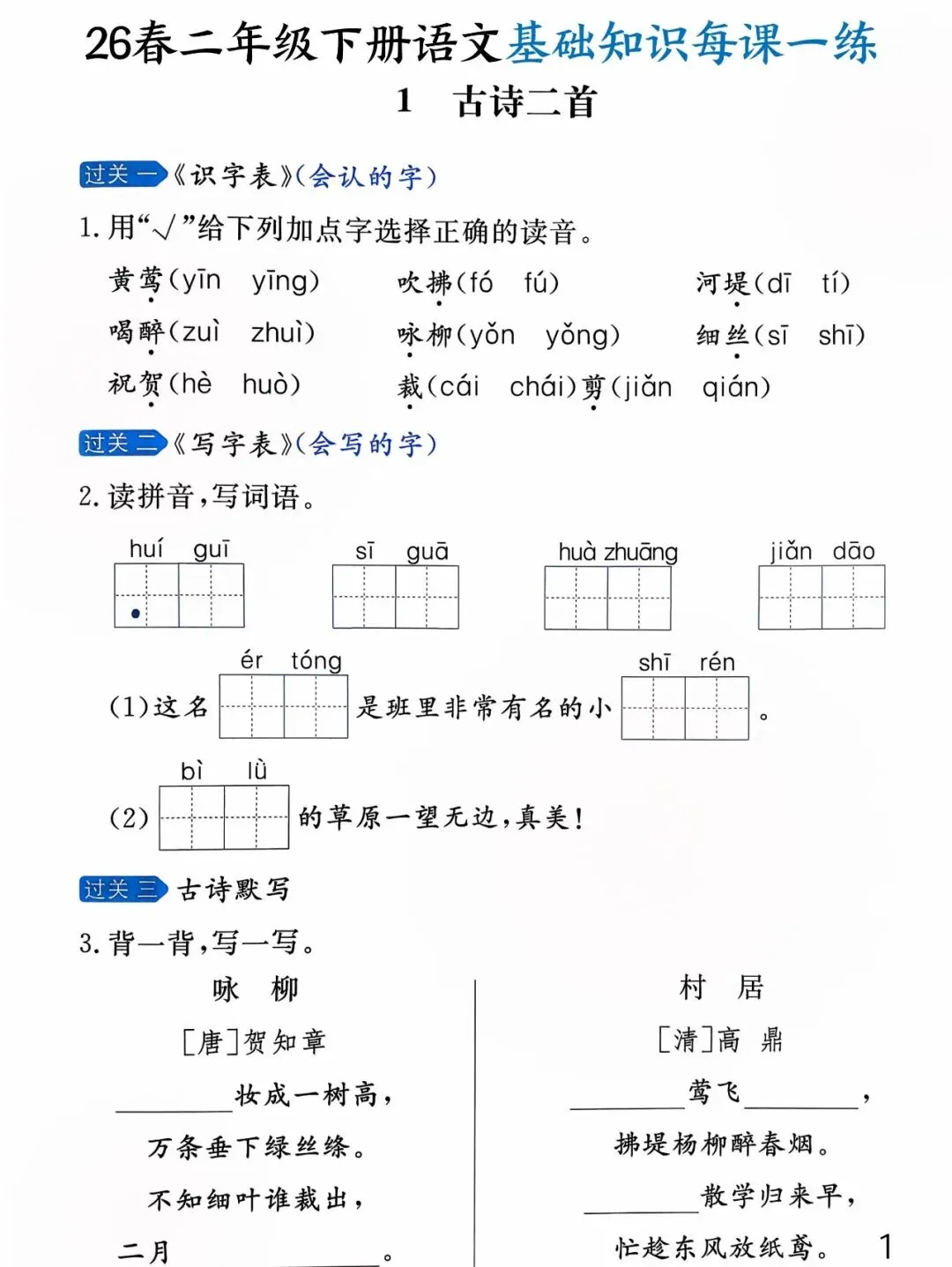 26年春版二年级下册语文《基础知识每课一练》(课课练),含答案,可打印