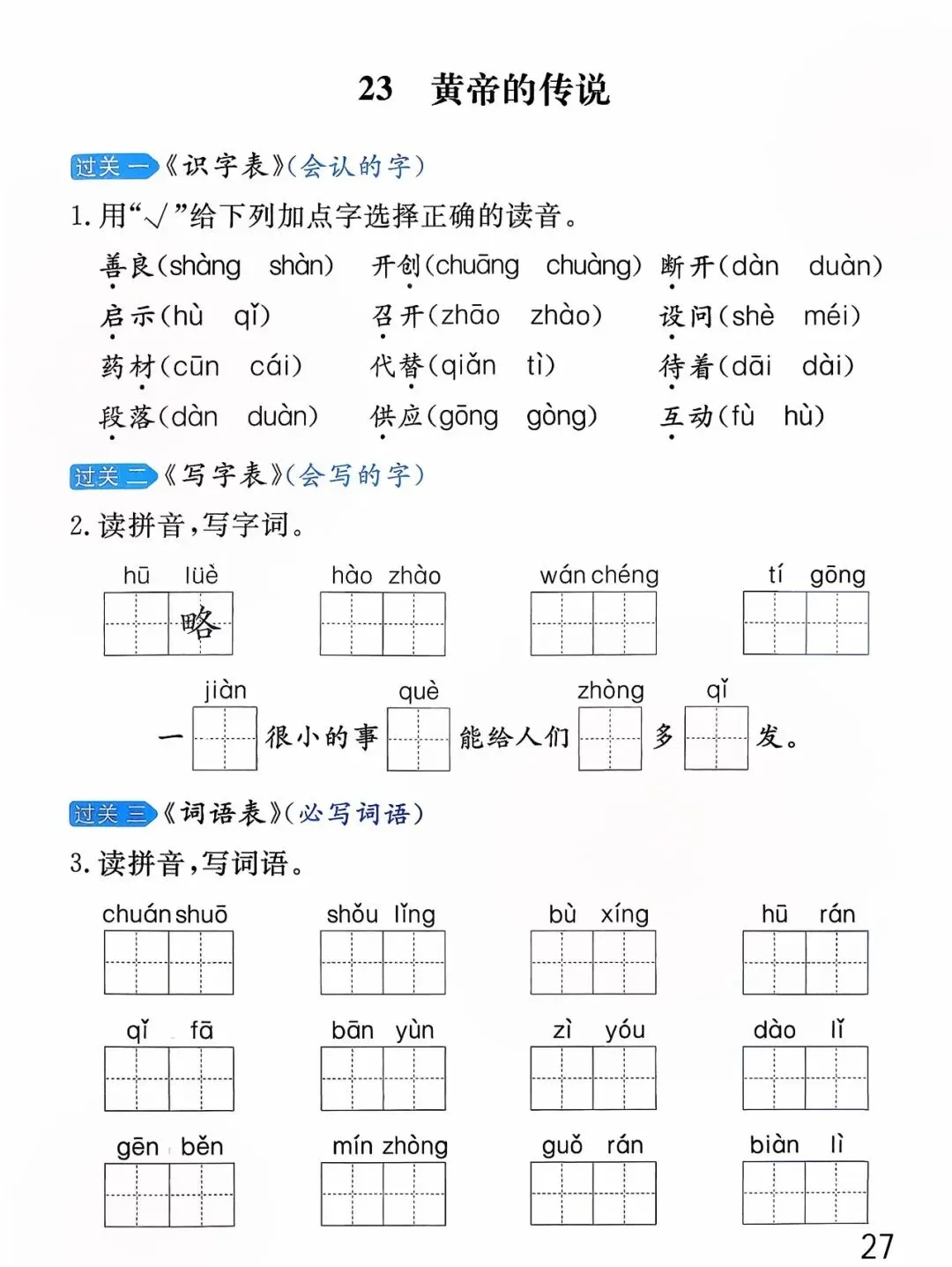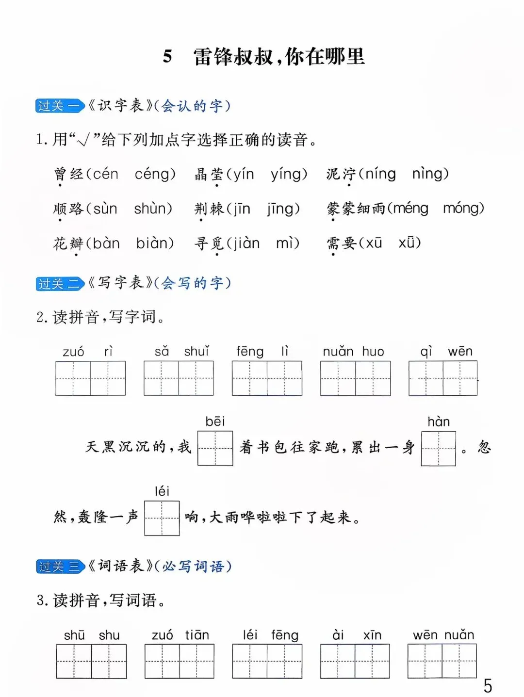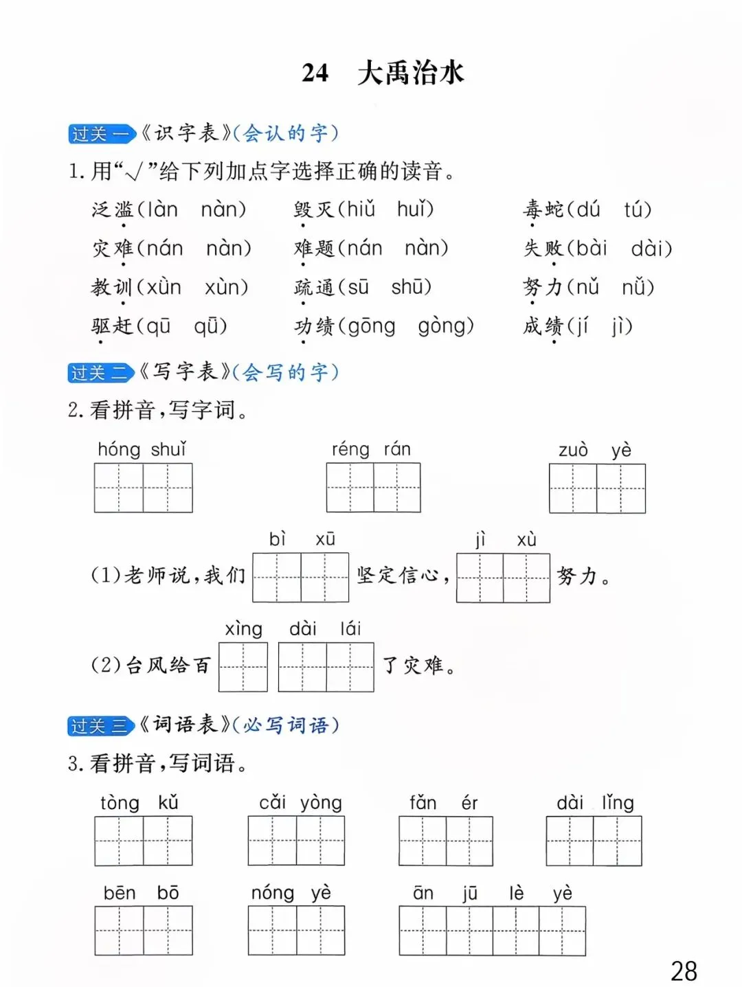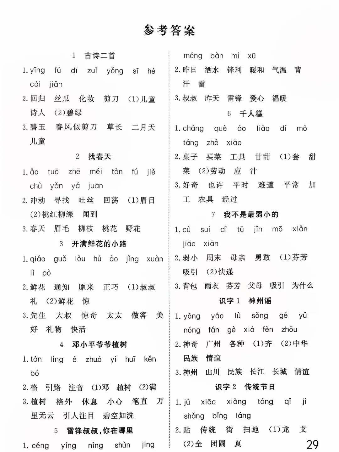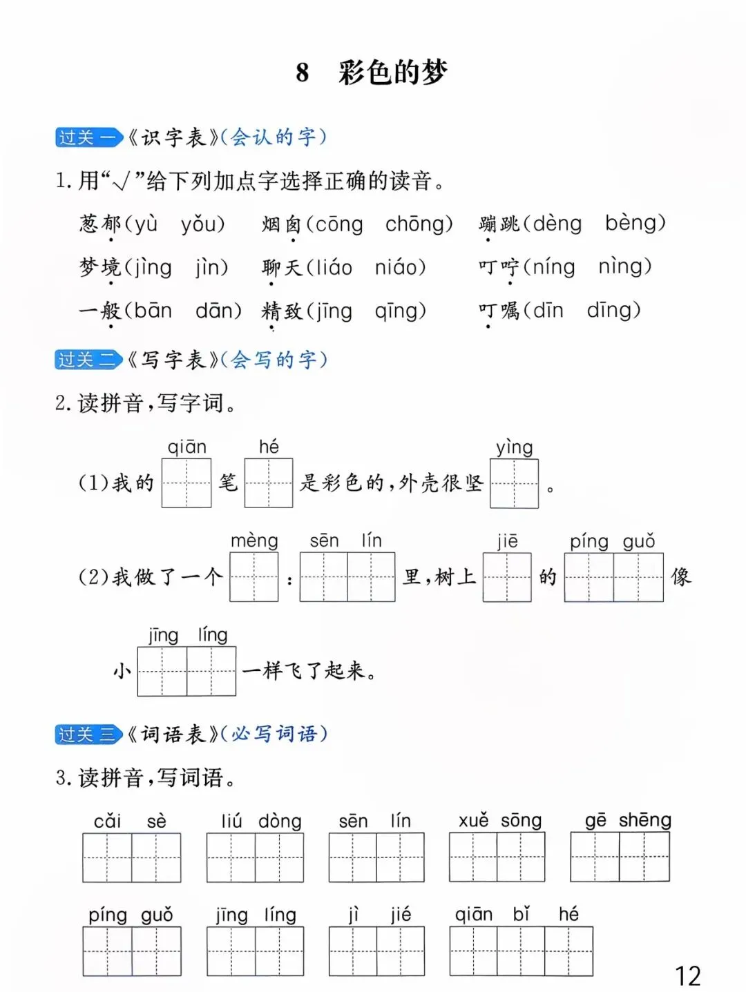 26年春版二年级下册语文《基础知识每课一练》(课课练),含答案,可打印