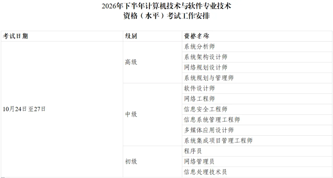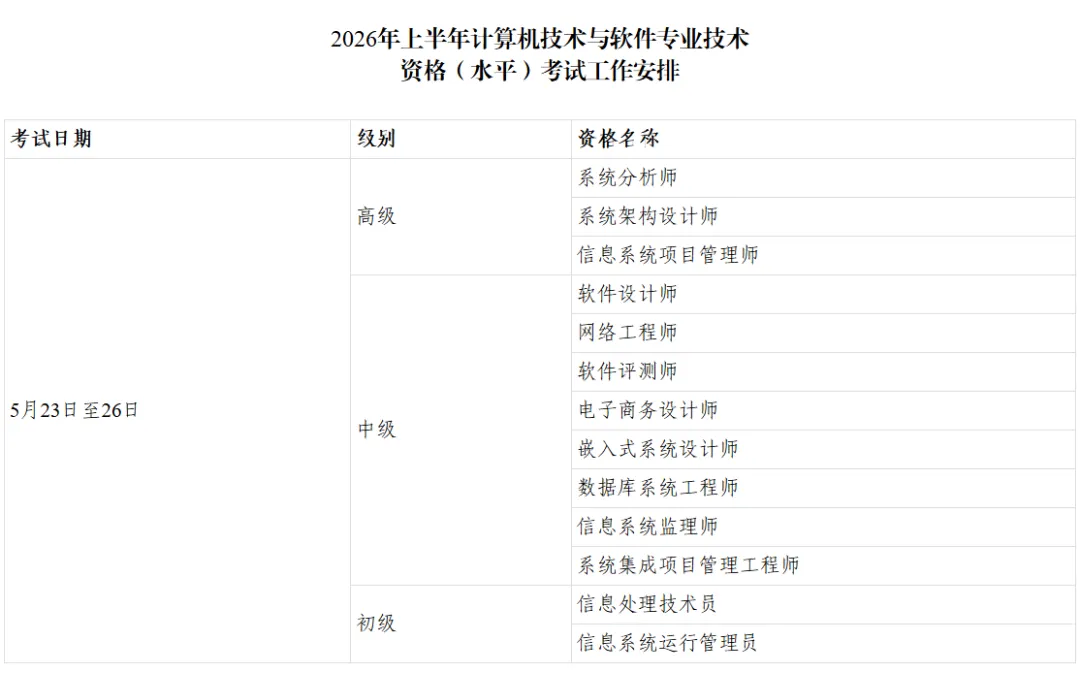 2026年度计算机技术与软件专业技术资格(水平)考试广西考区上下半年报名时间公布!