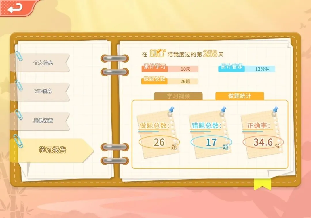 学习时长、做题总数、错题分布、正确率一目了然。家长不用在一旁盯着,每天点开报告,孩子的学情全掌握!