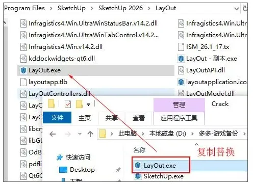 – 复制LayOut.exe文件替换到【C:\Program Files\SketchUp\SketchUp 2026\LayOut】