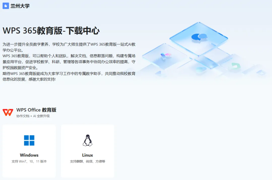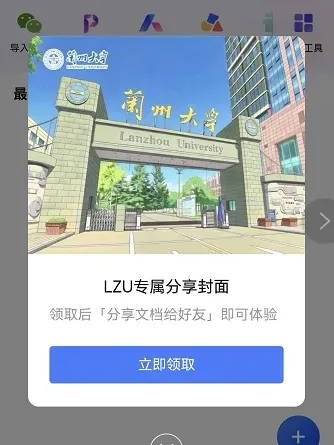 校园标识,超强荣誉归属感。激活兰大专属账号后,在使用金山文档小程序分享文档时可以设置分享封面为兰大专属版本。
