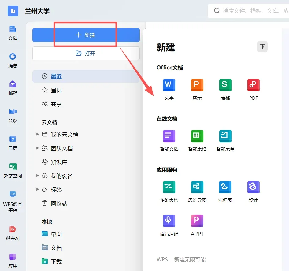 1.进入【金山文档】微信小程序,登录兰大专属账号(左上角显示“兰州大学”名称即为登录成功)