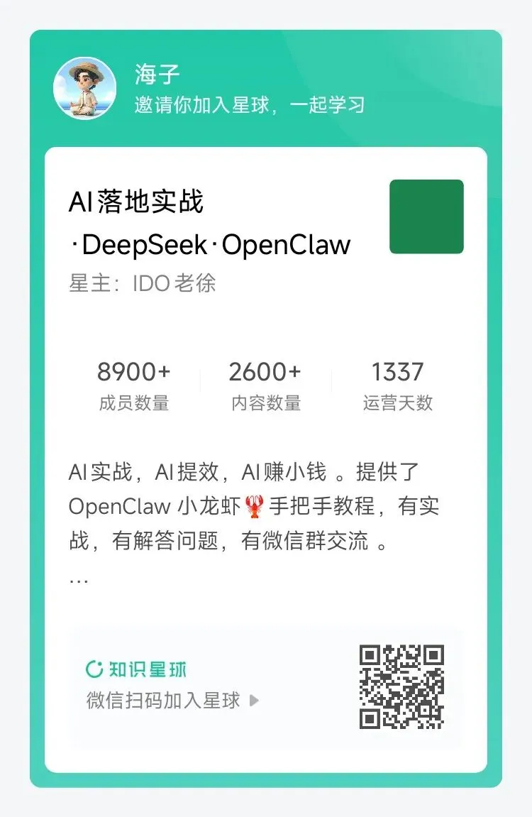 备注”龙虾日记”,未来送你一份《一人公司AI协作指南》(还没写完)。