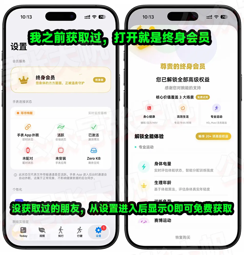 打开软件从设置顶部进入内购,终身显示0即可免费获取,显示价格说明限免结束,我之前获取过内购,这次下载打开就是终身会员!
