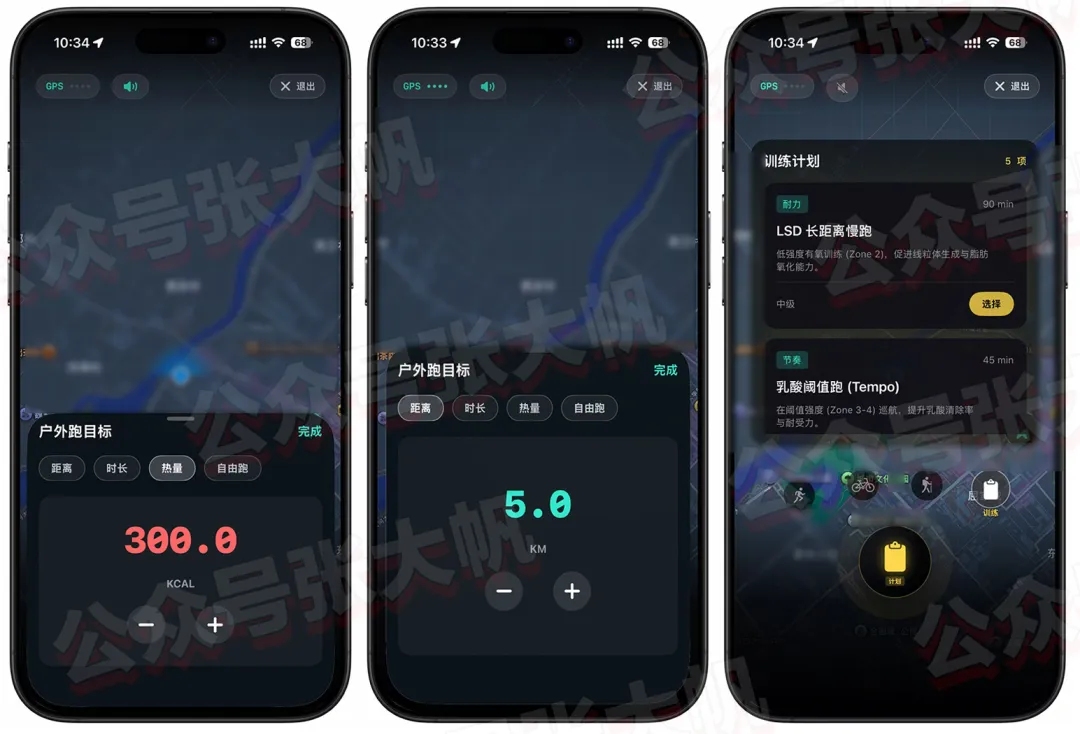 APP还支持户外活动实时记录提醒,比如跑步、骑行、徒步、各种专业训练计划,可以设定目标任务,非常人性化。