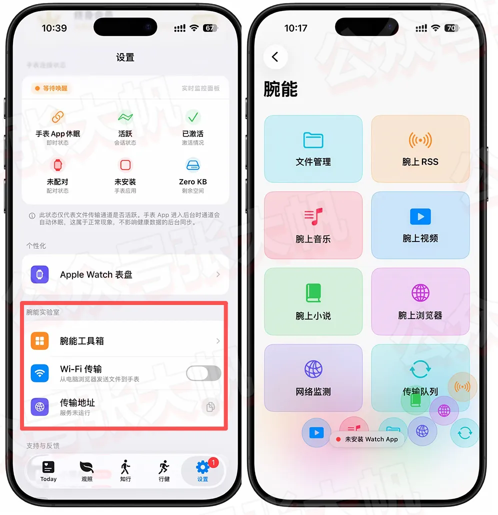 除了健康运动功能,它还支持内置了多个工具和娱乐功能,可以在设置的实验室打开使用。