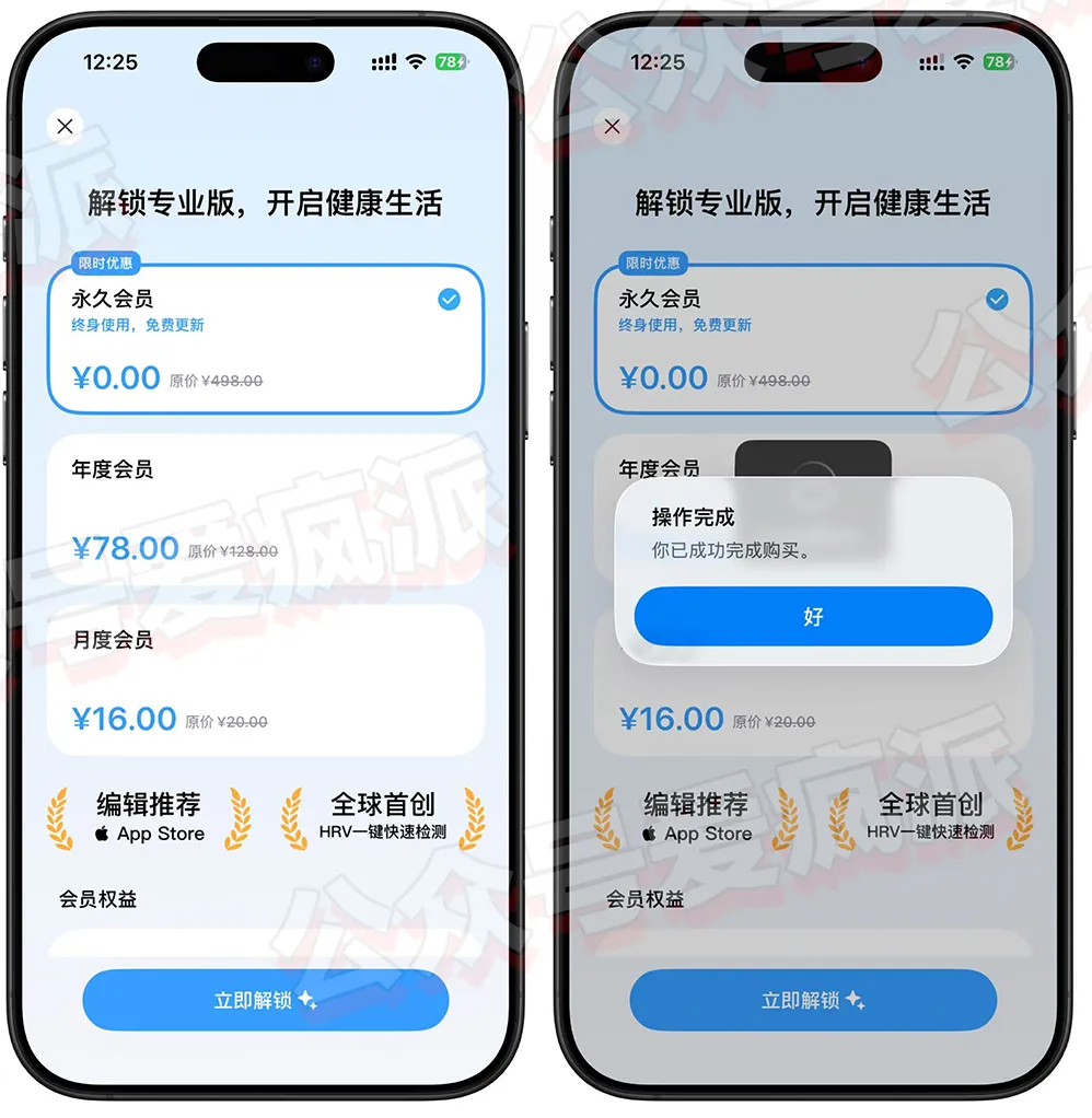 打开软件完成初始化就会弹出内购,永久显示0即可免费解锁,限免软件手慢无!