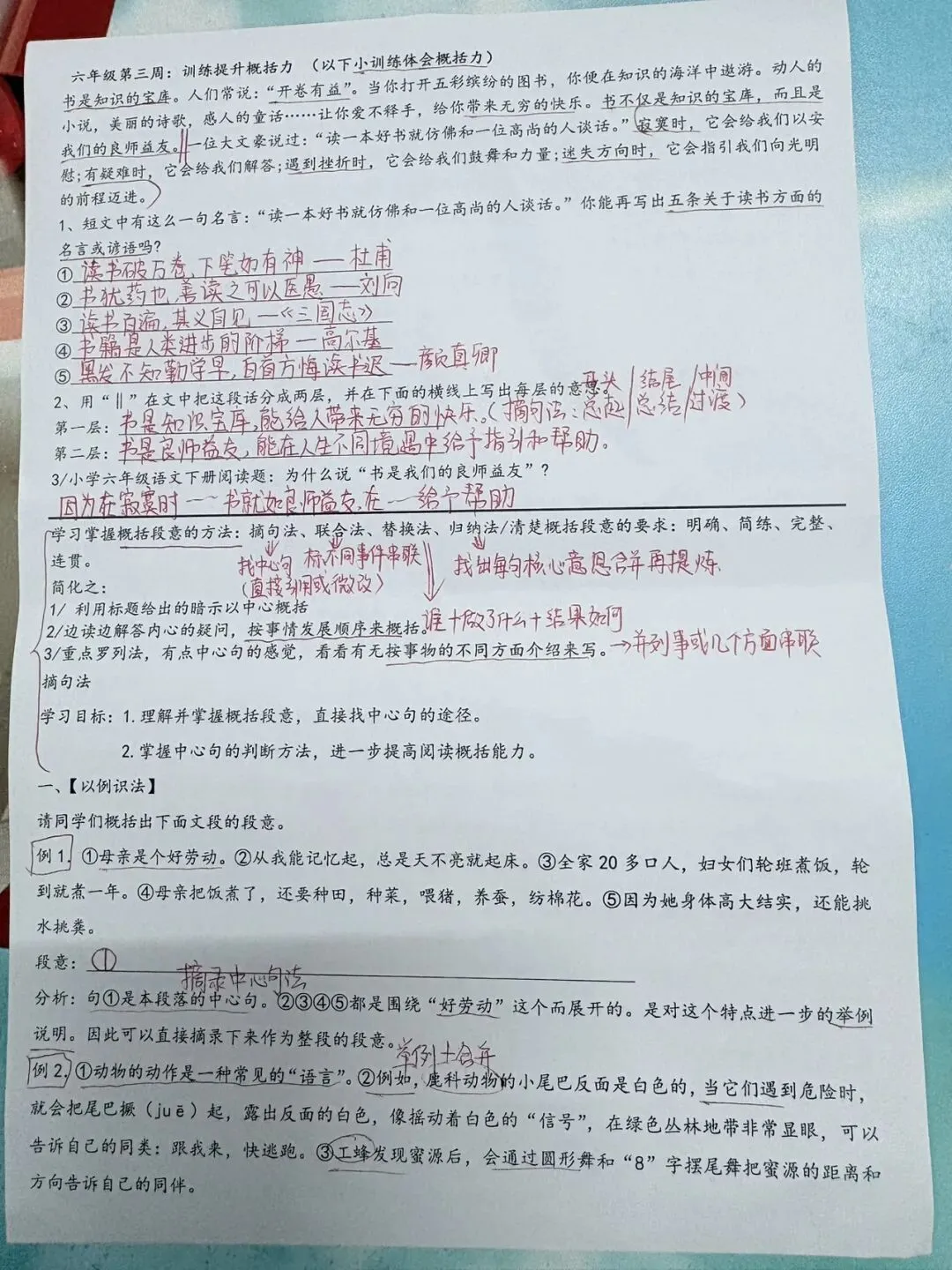 六年级语文阅读概括能力专项练习(答案版)