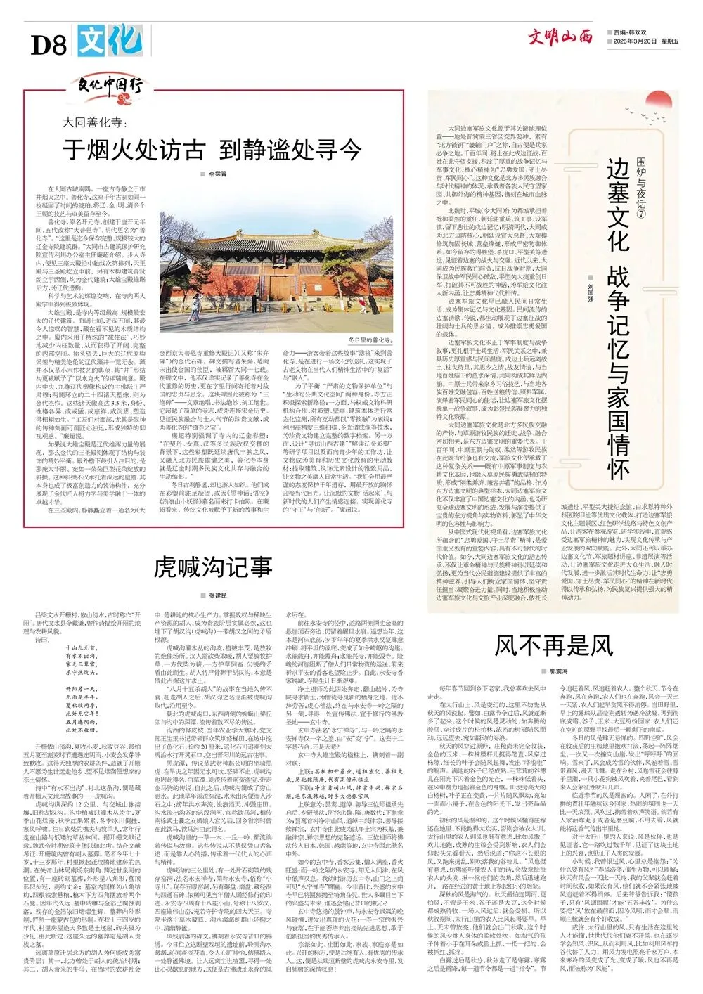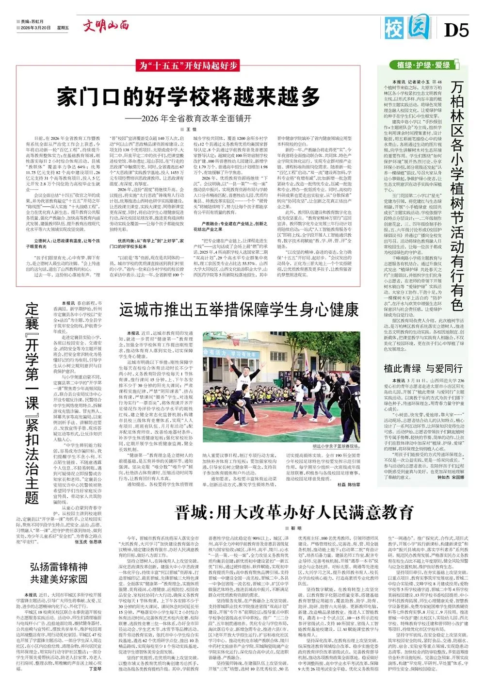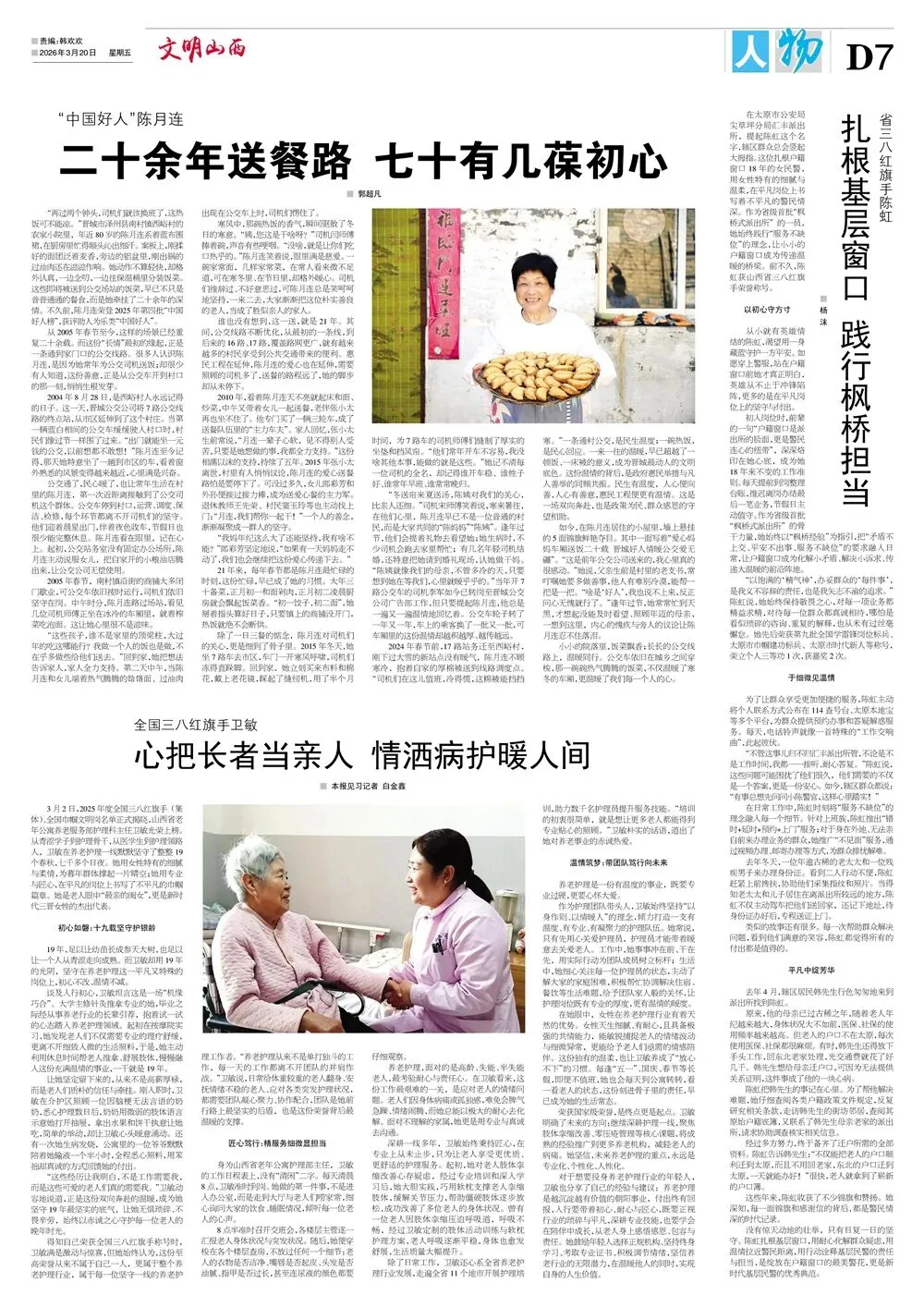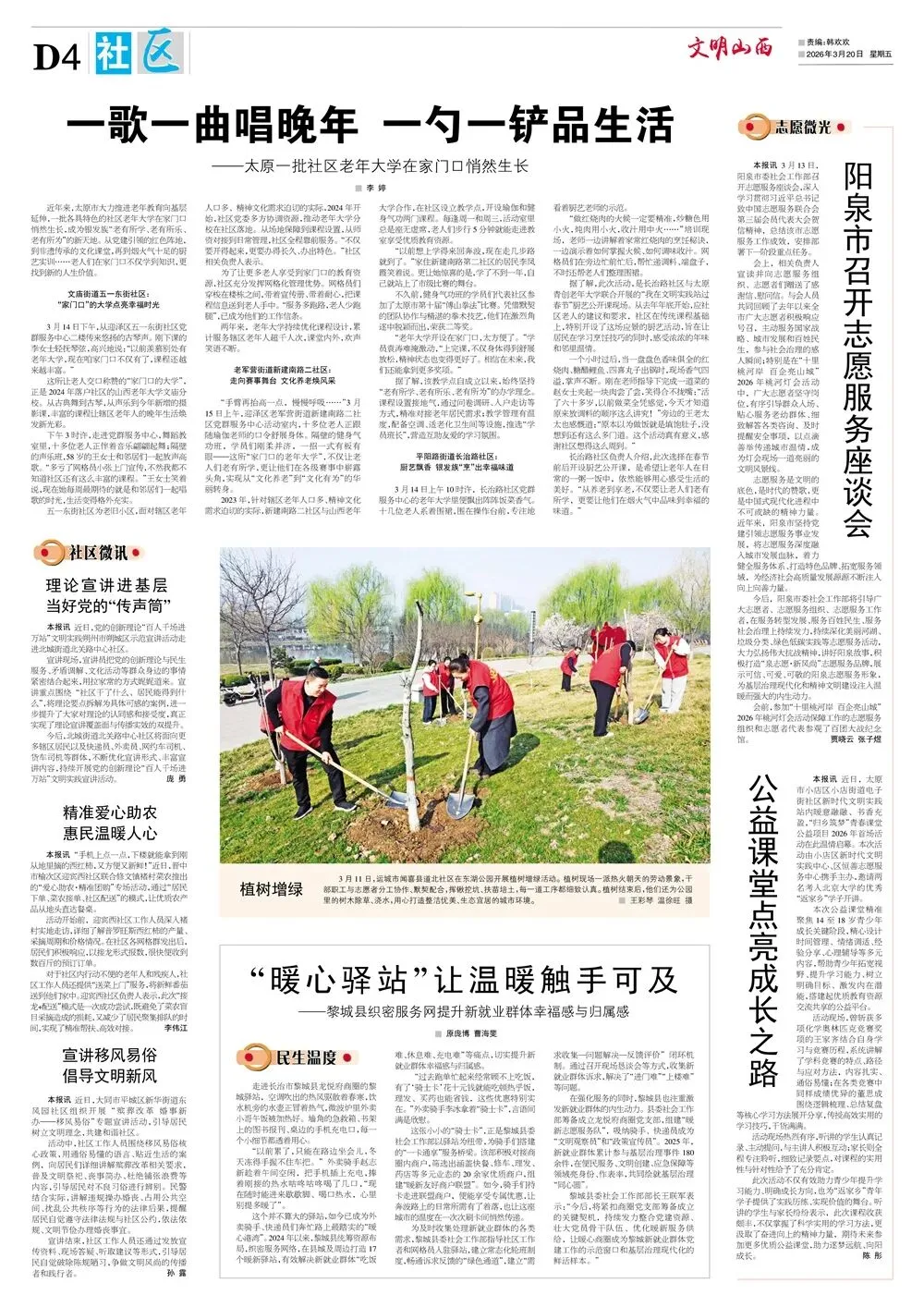 《文明山西》周刊3月20日电子版 核心提示 《文明山西》周刊由山西省文明办指导、科学导报社主办,是全省唯一的精神文明类报纸,对开八版,每周五出版,重点宣传山西省群众性精神文明“五大创建”活动、新时代文明实践中心建设、道德典型选树、学雷锋志愿服务等精神文明建设工作,兼顾报道全国各地精神文明创建活动先进经验和创新举措。 关注文明山西周刊视频号,观看更多精彩视频! 编 辑|郭 菲 审 核|常雅丽 ▍转载:如果转载请注明出处 ▍转载此图文仅为传递公众信息,若侵权请联系我们,我们将及时更正、删除,谢谢。 ▍邮箱:sxwmxyzk@163.com