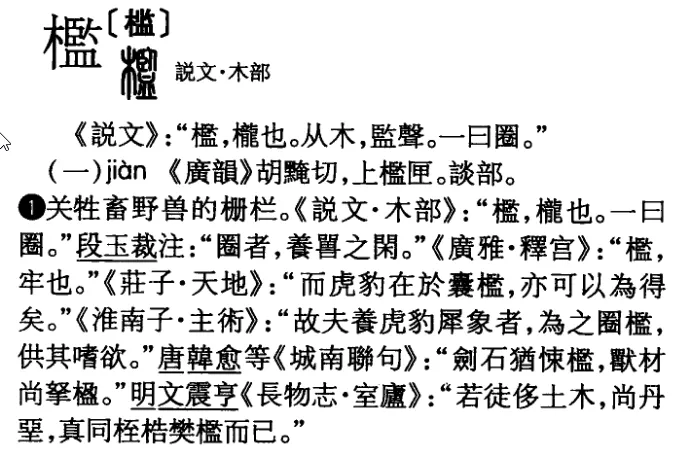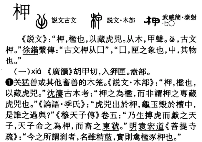 由入扱、下扱,我们可以猜测扱可能笼子之类的东西,装有机关,狐狸一转钻进去,笼门就关上了。那么,古代有接近这种猜测的东西吗?答曰:有,比如槛、柙、樊。