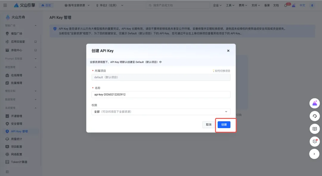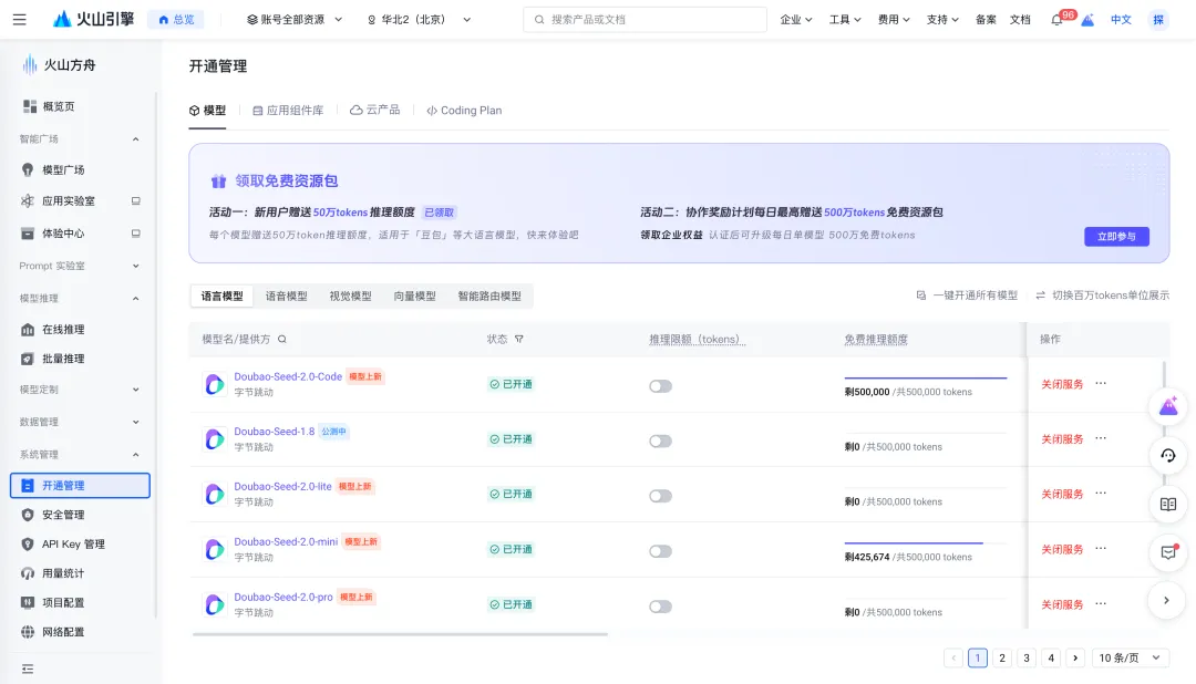 - 选择Doubao-Seed-2.0-lite,然后点击开通服务。