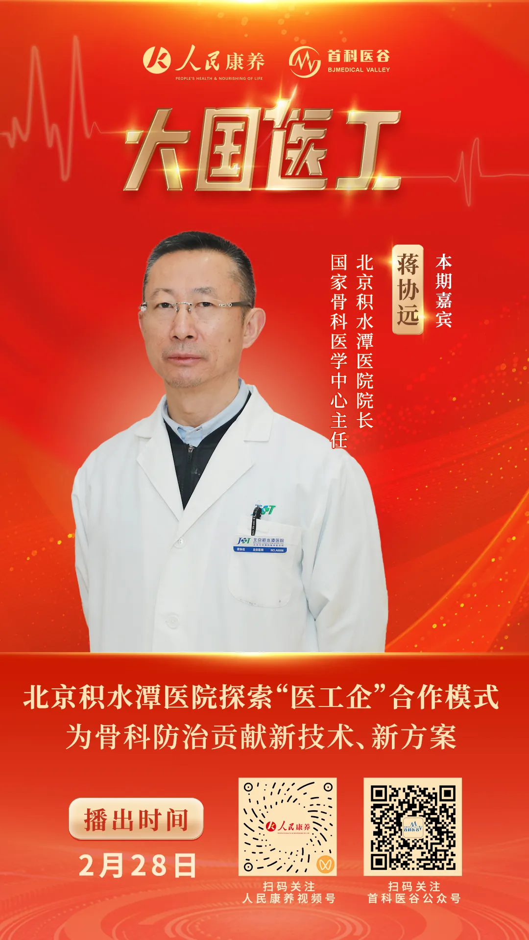 2、首科医谷与人民日报社《民生周刊》杂志社、人民康养、联合发起制作国内首档围绕临床医工创新转化与应用的“大国”系列栏目之《大国医工》,以医工融合创新,助力健康中国建设为宗旨,邀请医工领域权威专家,围绕医疗前沿技术、行业发展趋势开展深度对话与专业解读。