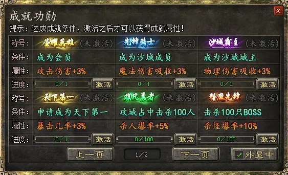 3:天地玄壶(产出大量上古雕纹)最后一层有传说中的元素骷髅王,杀死即可获得专属称号。具体查看成就称号