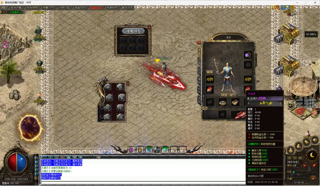 收集书页,从太极观开始,地图开始掉落书页。,优先学习召唤神兽技能,第二个学毒云,第三个天霜冰环,这样你就可以群怪了,打怪嗷嗷块