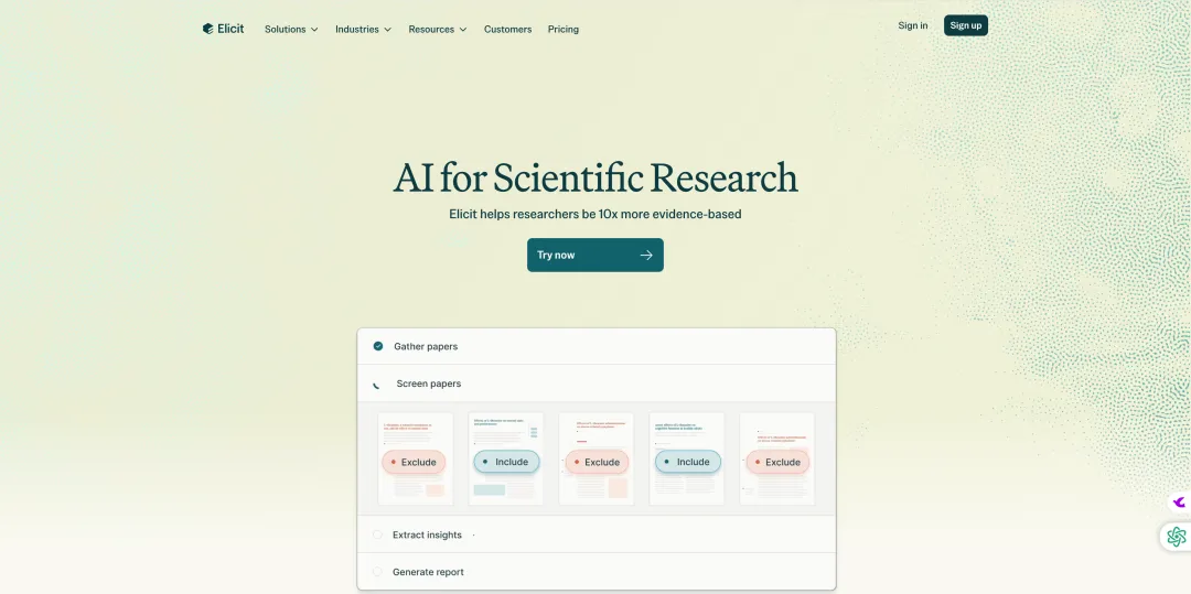 它能做什么:AI 搜索引擎,直接从科学论文中提取基于证据的答案。适合查找有明确答案的科学问题。