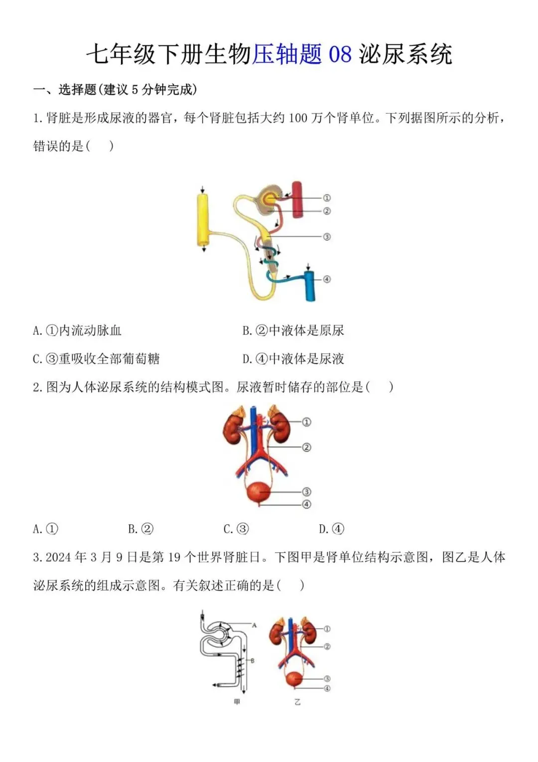 七下生物泌尿系统易错点整理,考试不丢分,电子打印版!