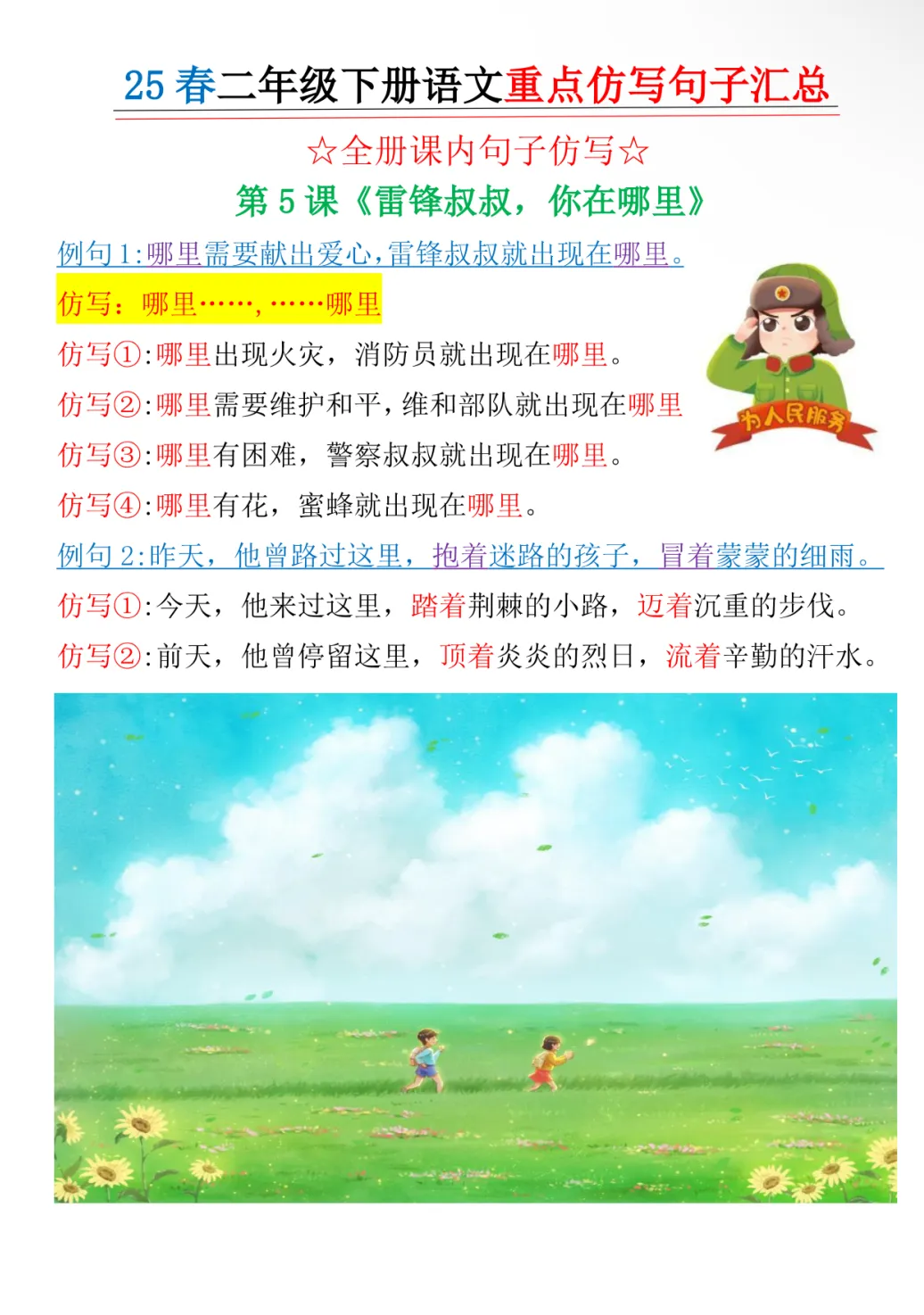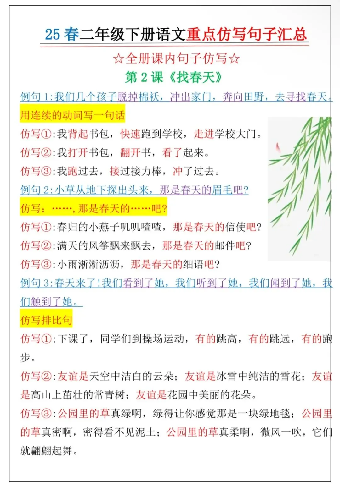 25春季最新版二年级下册语文【重点仿写句子】电子版可打印