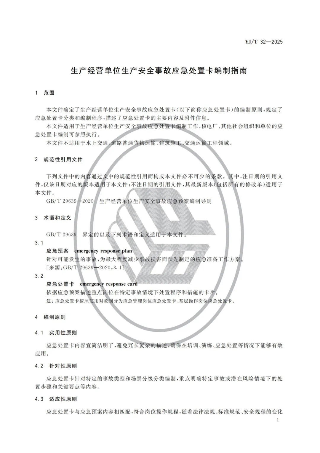 免费下载!【新标】全国统一应急处置卡的编制!4月30日正式实施!YJ T 32-2025