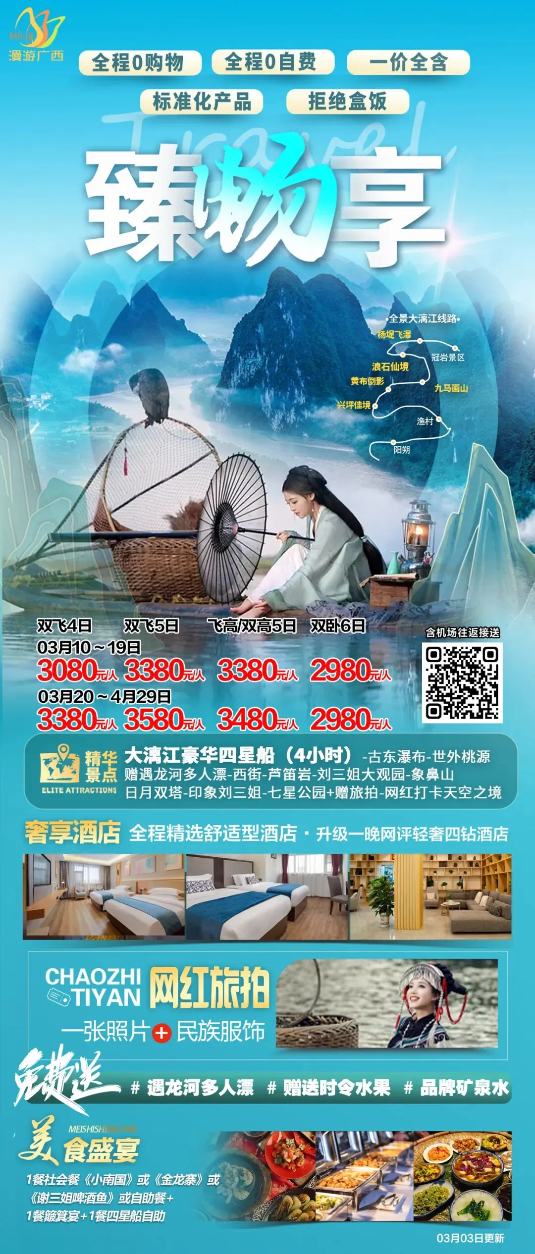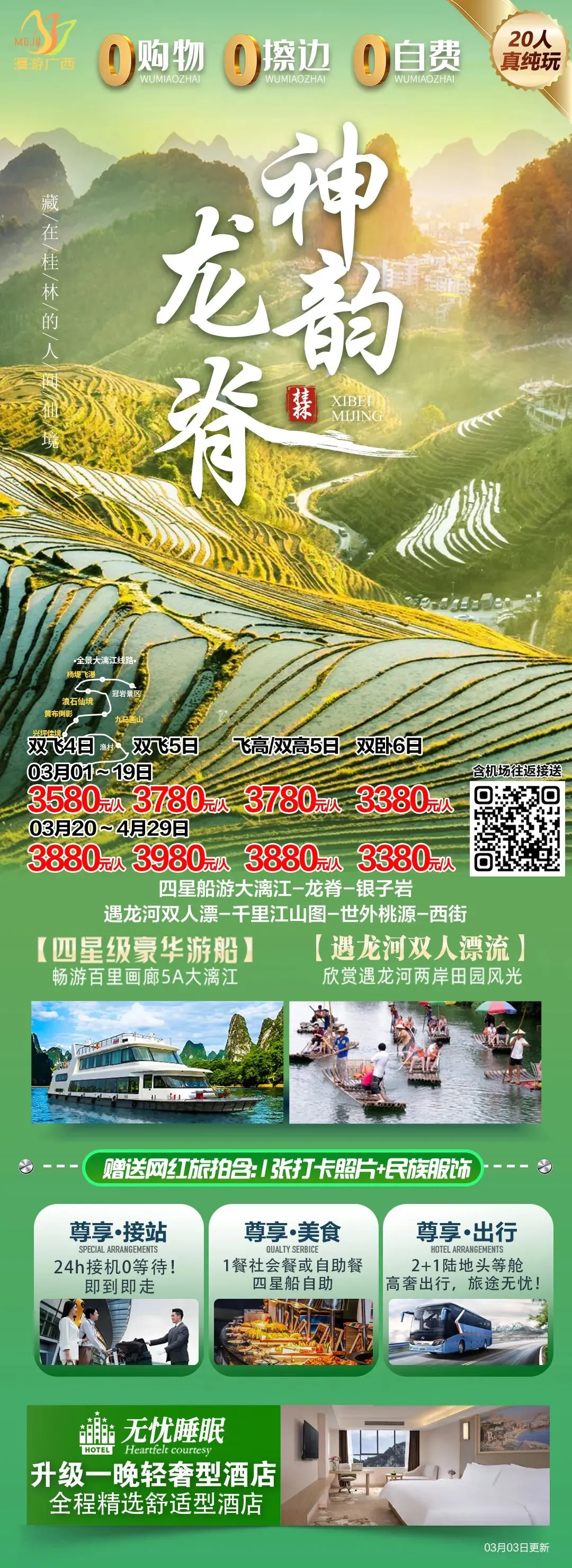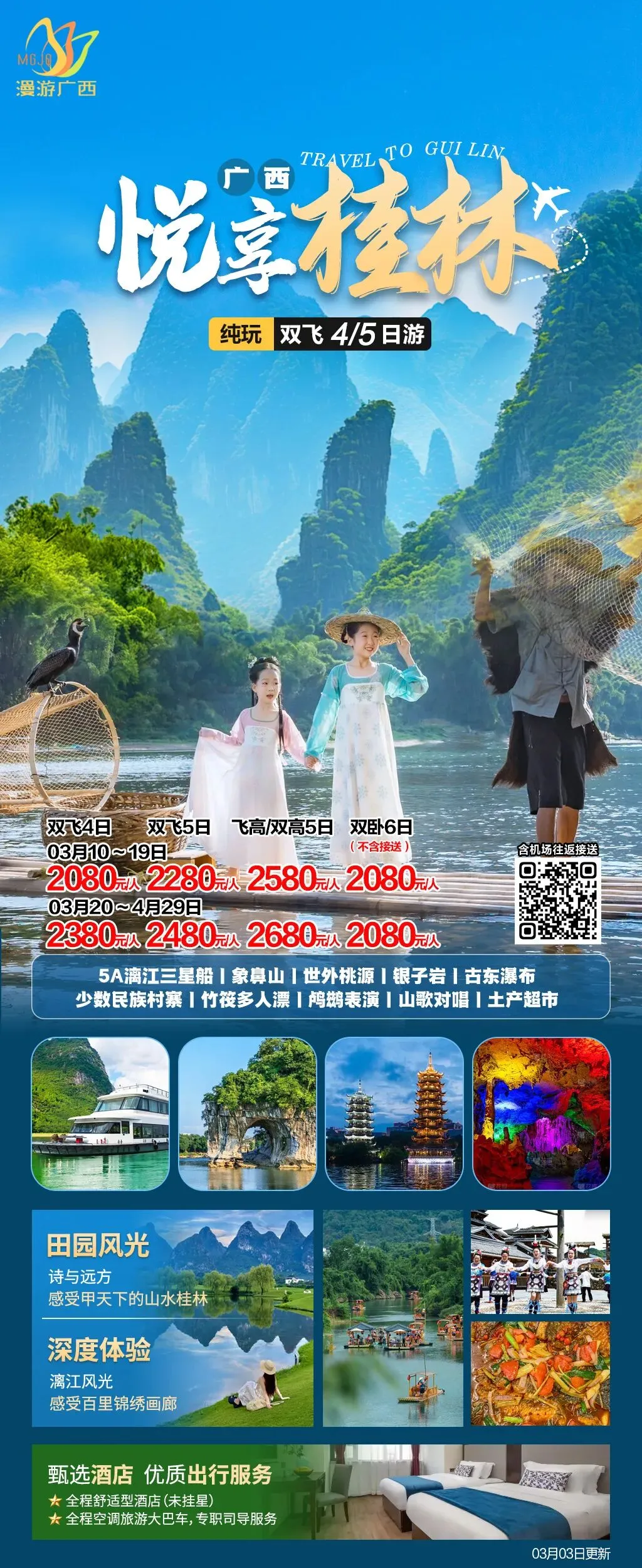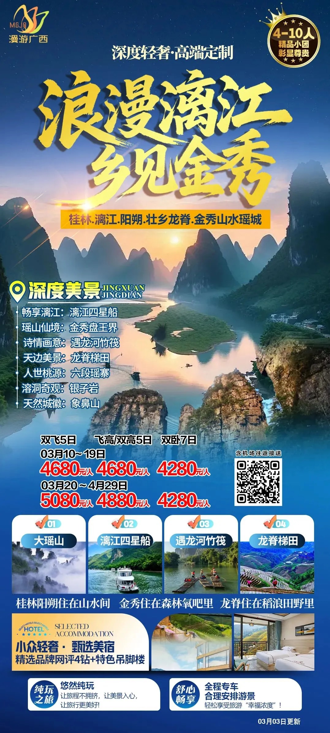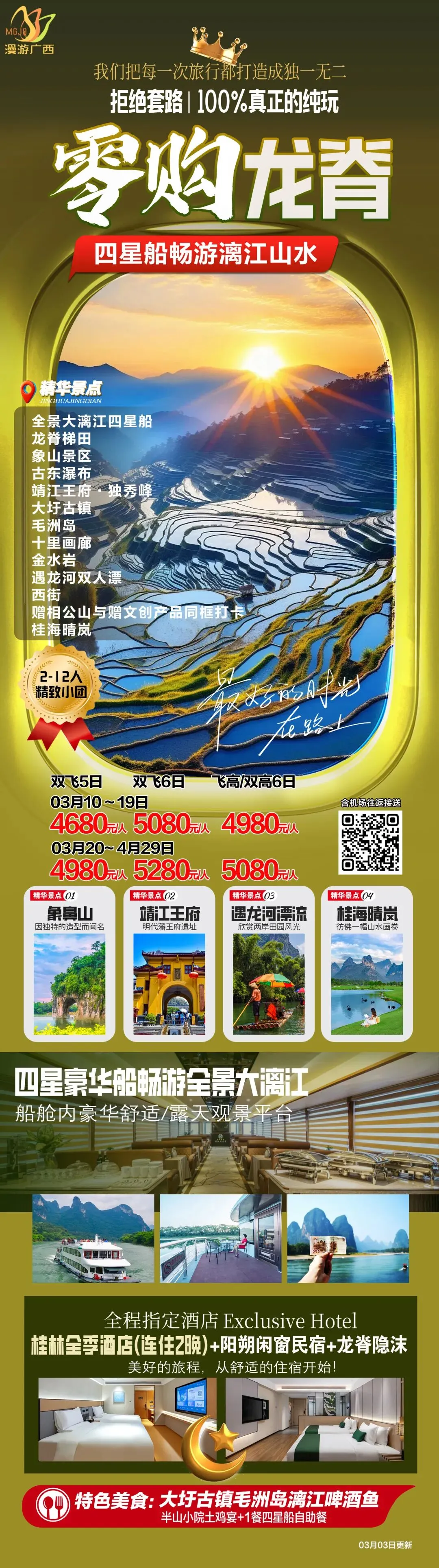 🌹深度美景:漓江四星船/金秀盘王/遇龙河竹筏/龙脊梯田/六段瑶寨/银子岩/象鼻山
